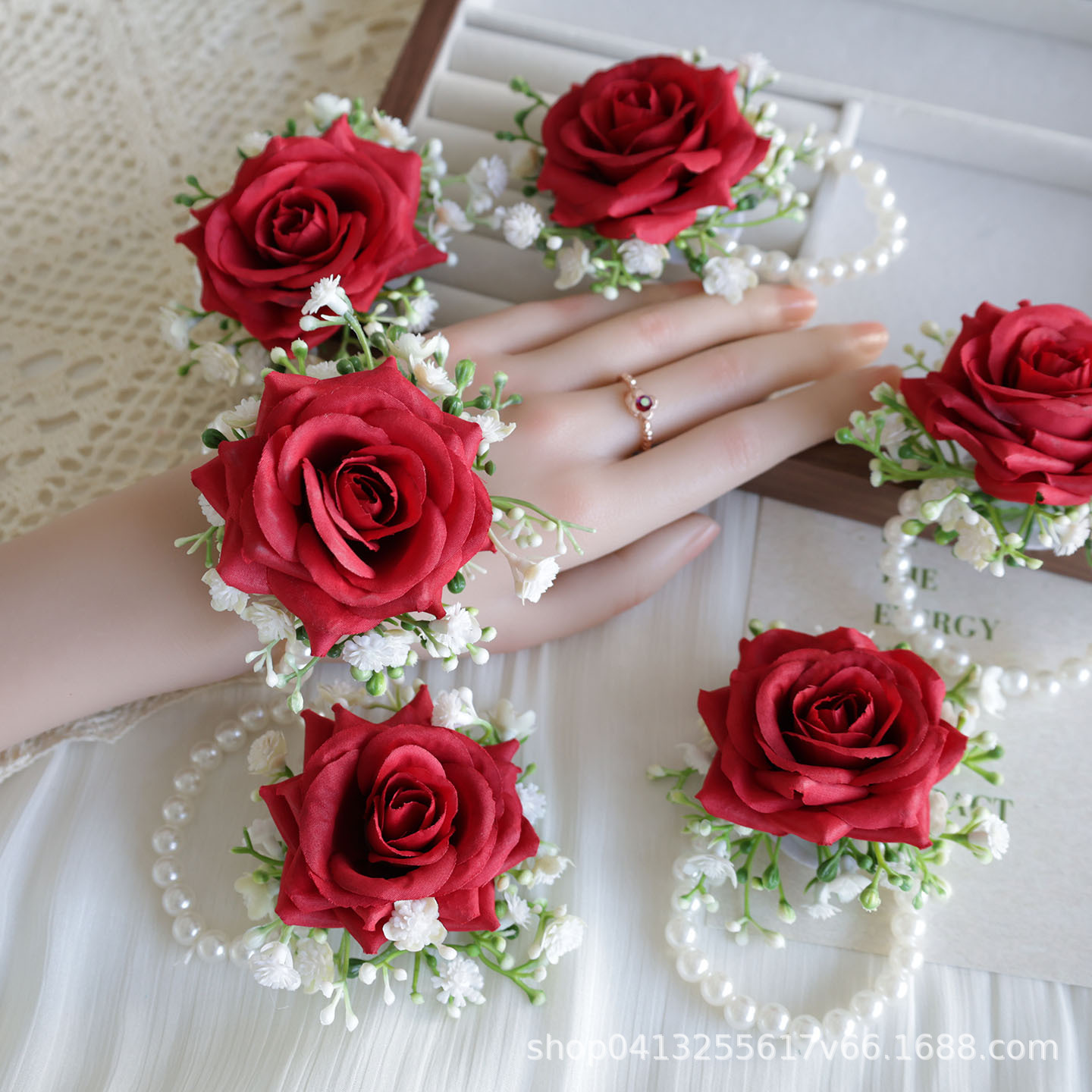 H0010 アマゾンクロスボーダー結婚式のお祝いオープニングゲスト模擬バラコサージュ手首花ウェディング用品