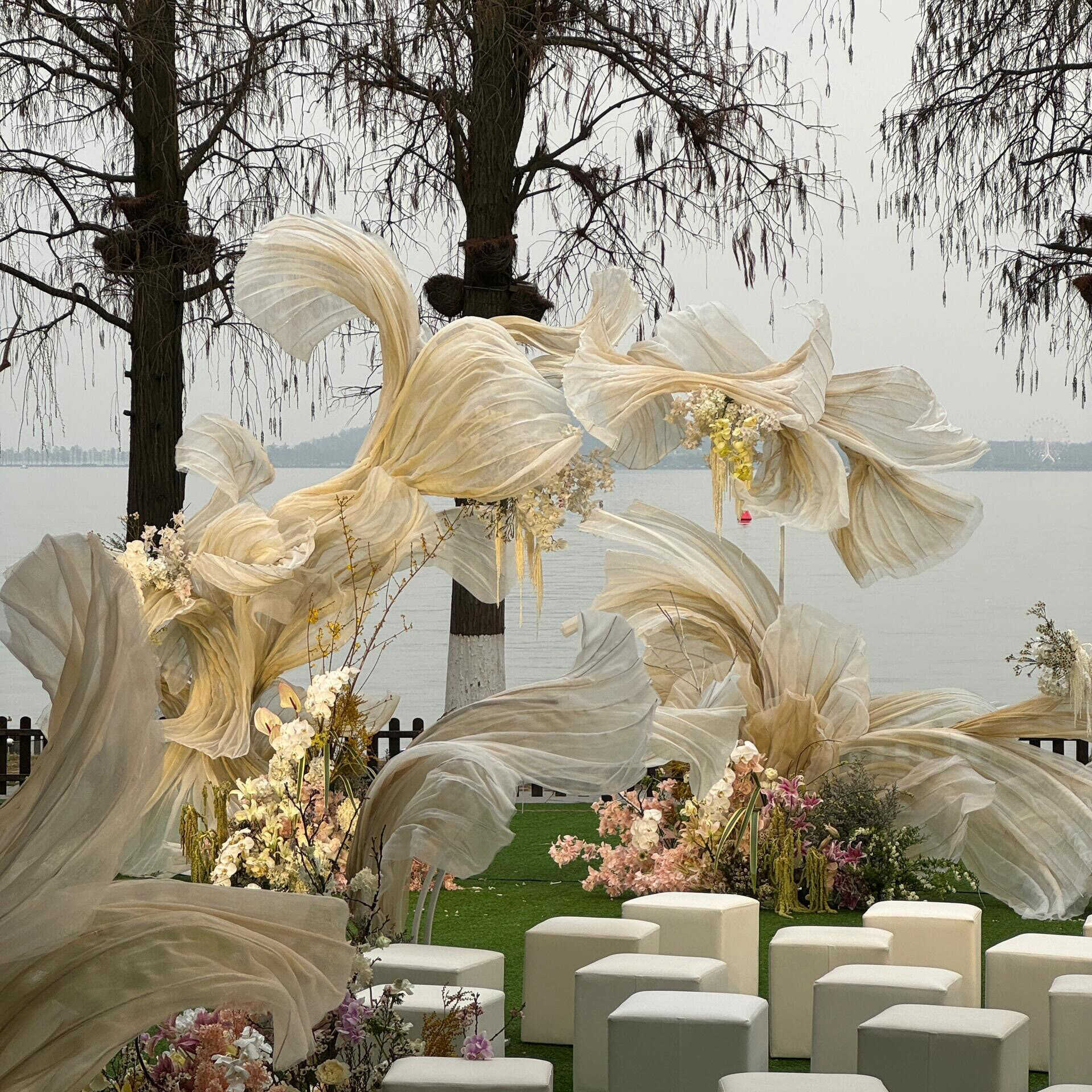 結婚式の装飾シルクリボン装飾ディスプレイ道路ガイド結婚式結婚式の現場の背景写真撮影 dp ポイントセット