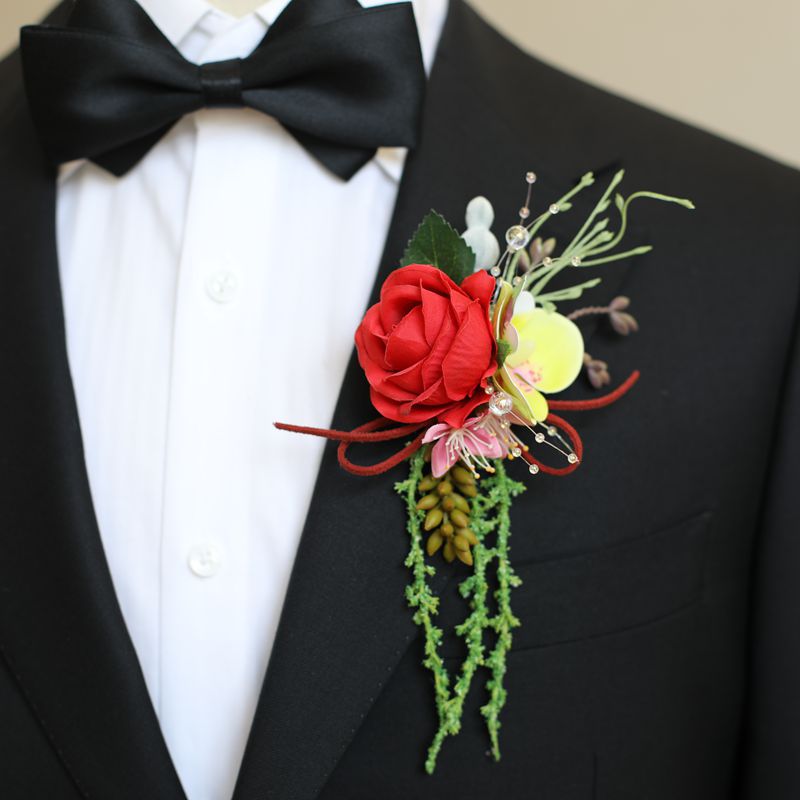 ウェディングコサージュ、ウェディング用品、新郎新婦スプレーベルベットコサージュメーカー、在庫処分、ゲスト会議コサージュ