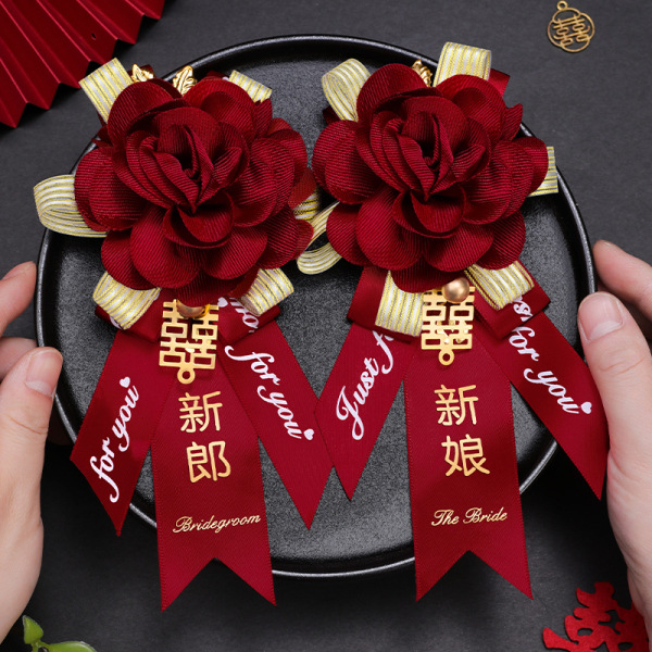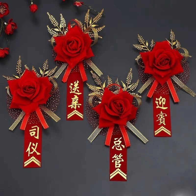 ハイエンドのブートニア、ブライズメイドグループのリストブーケ、家族のフルセット、中国風の新郎新婦のウェディングブートニアピン、ベストマンとブライズメイド