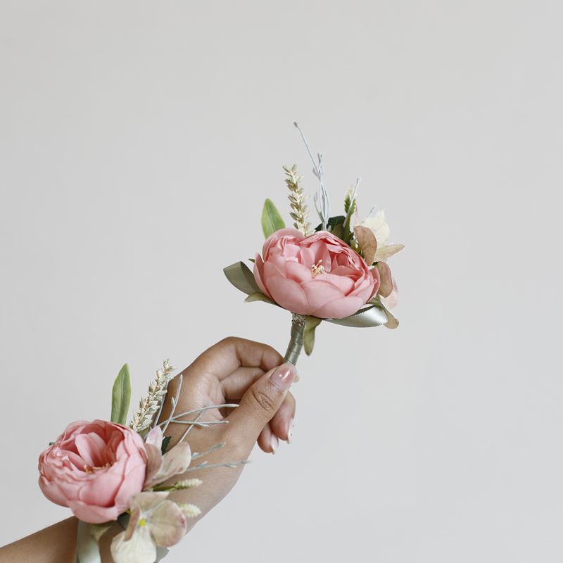 コサージュ、リストフラワー、韓国の結婚式、森風コサージュ、ブライズメイド、花嫁、結婚式、写真撮影、イベント、模擬バラ