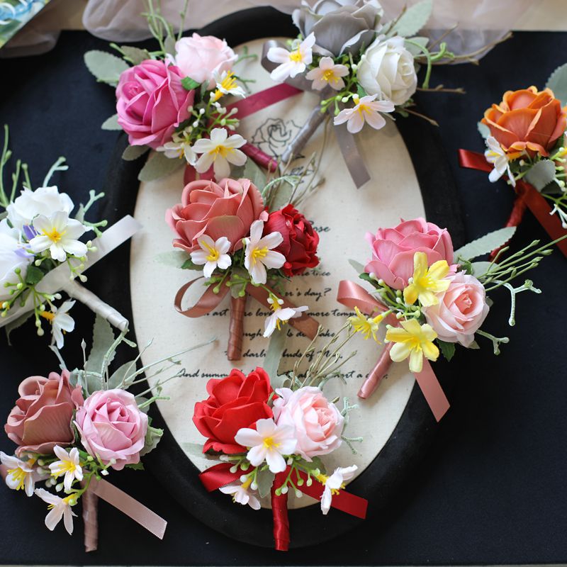 クロスボーダー卸売花嫁手首花花嫁団姉妹手花花嫁新郎ブローチ襟胸花結婚式用品