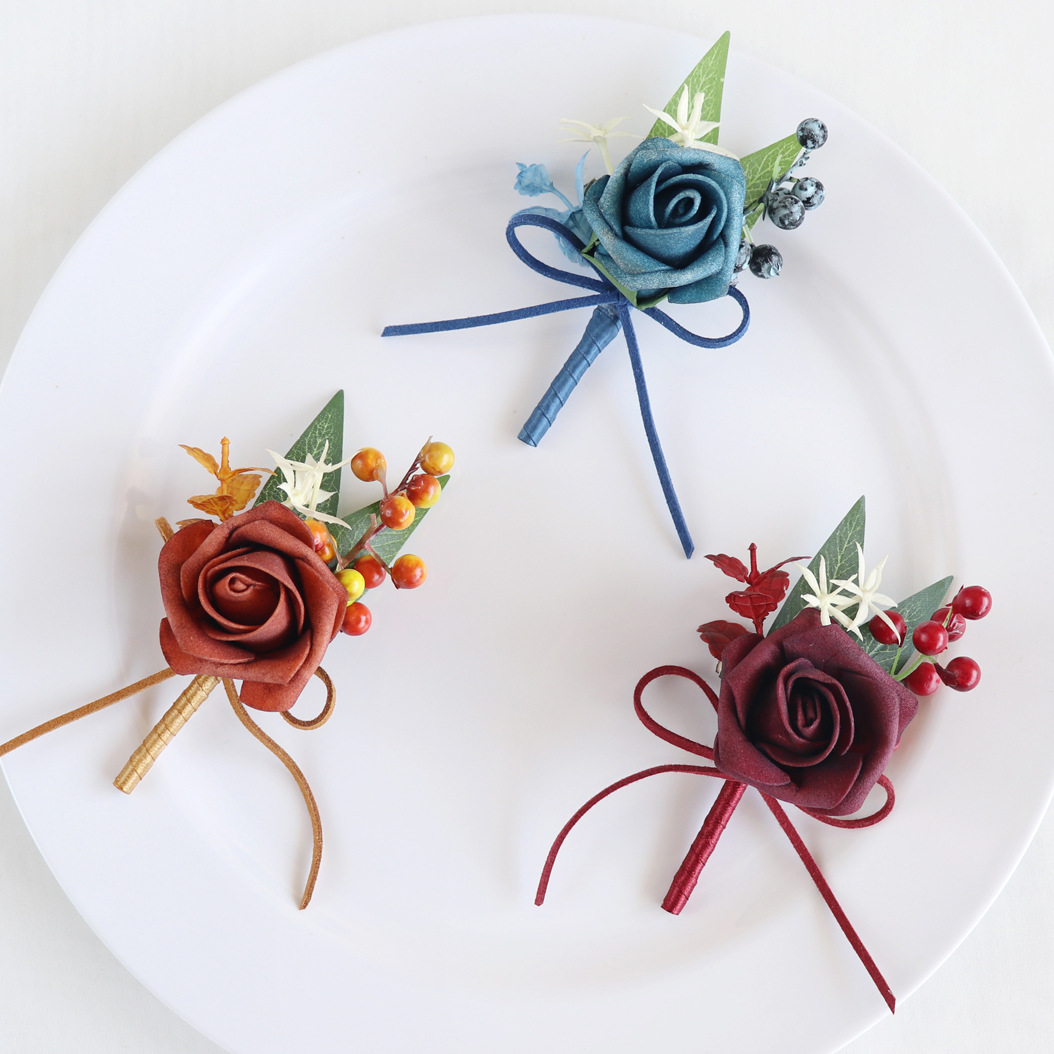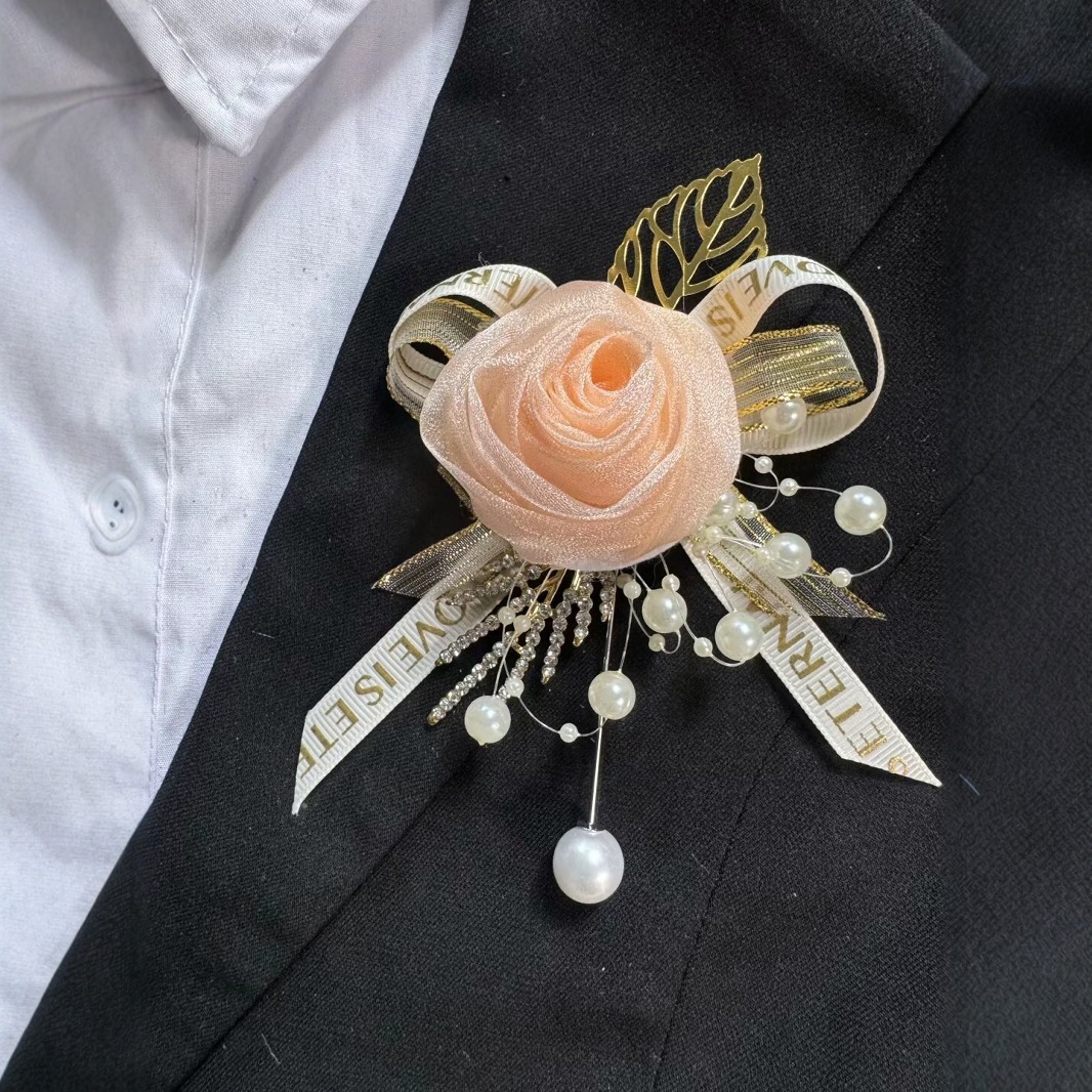 新郎伴郎胸花高級感森系薔薇胸花結婚進学祝典ゲスト洋服胸花卸売り