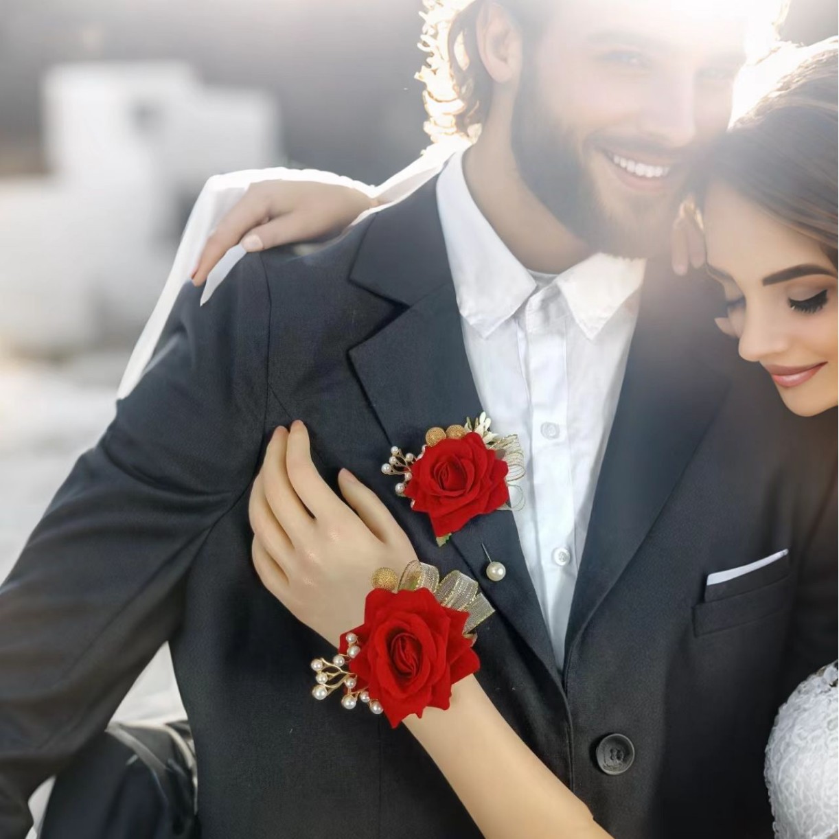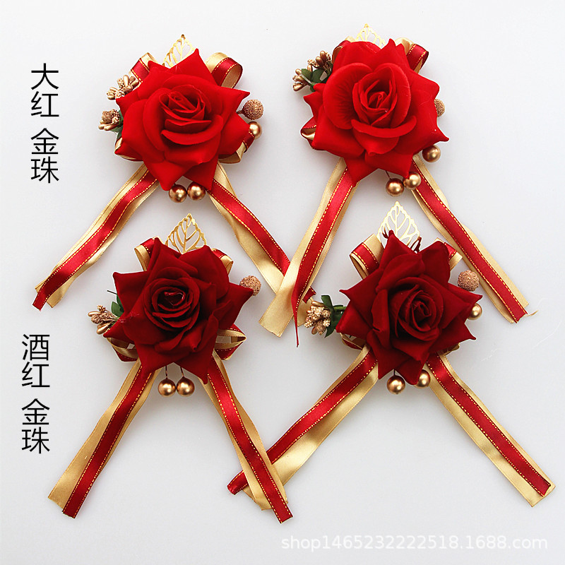 レッドシミュレーションティーローズ花嫁姉妹グループ結婚式手首の花新郎兄弟グループコサージュ卒業祝いイベント