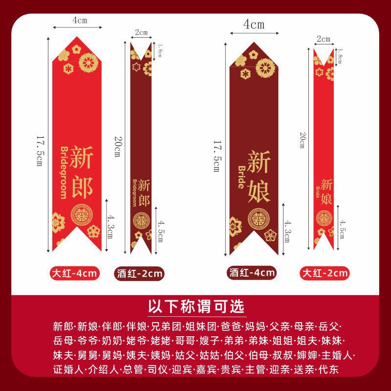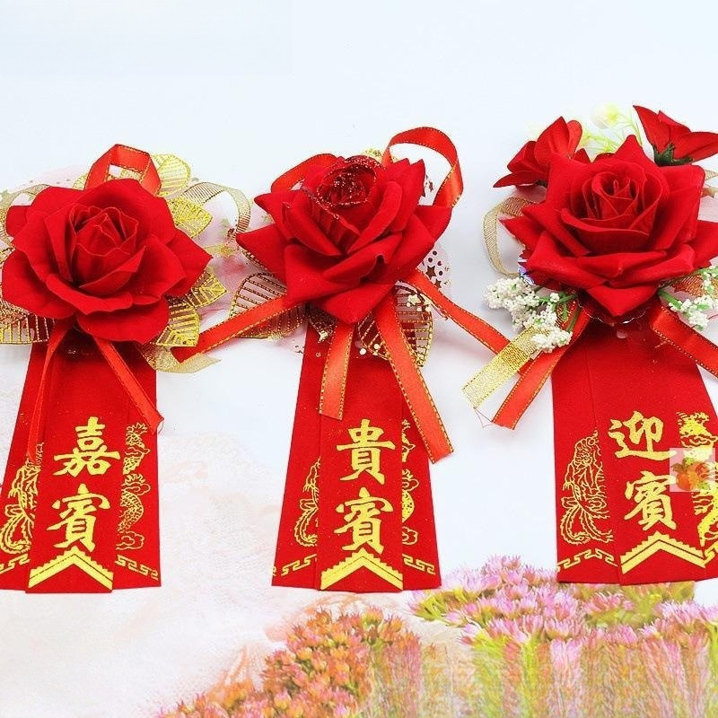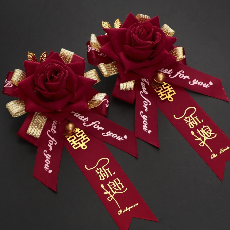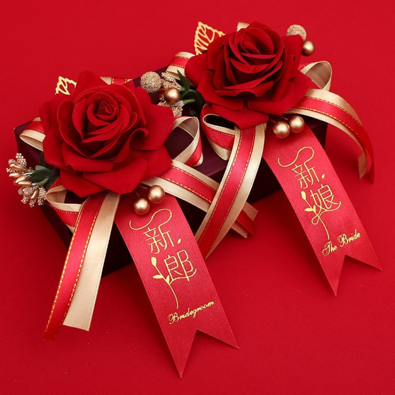 ウェディングコサージュリボンフルセット卸売お祝い用品新郎新婦ウェディングコサージュメッセージストリップアクセサリー