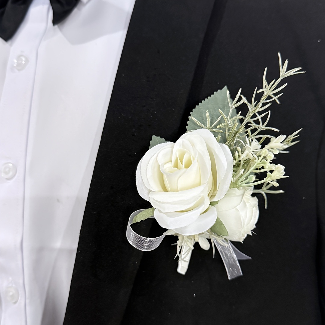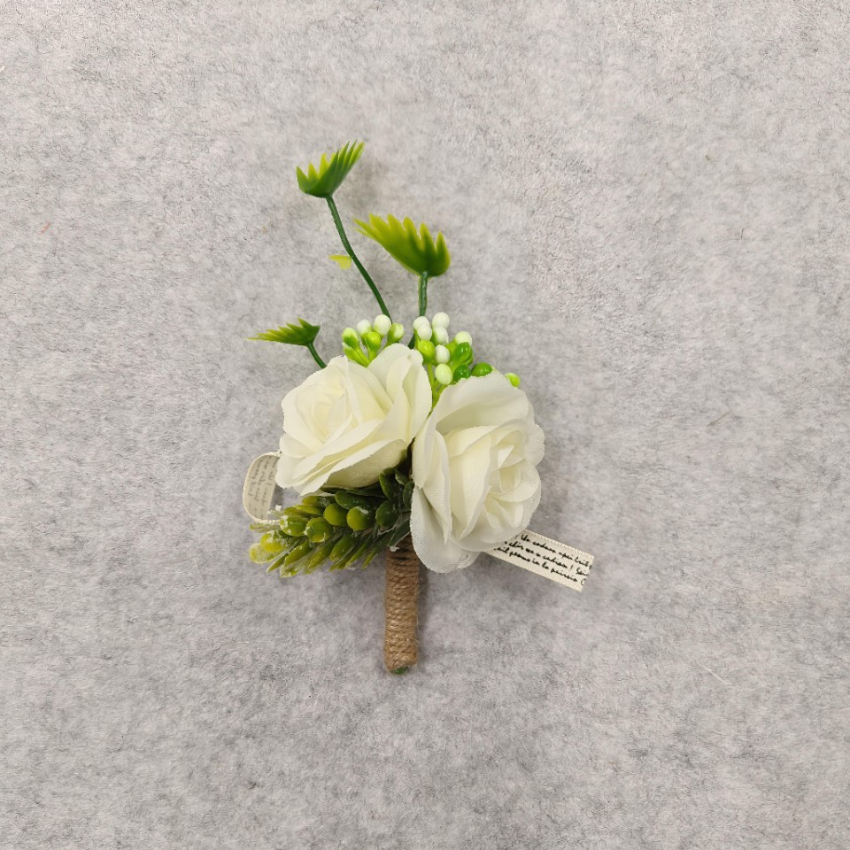 国境を越えた売れ筋模擬ウェディングホワイトローズコサージュヨーロピアンスタイルブライズメイドウェディングベストマンウェルカムゲストフォレストコサージュ