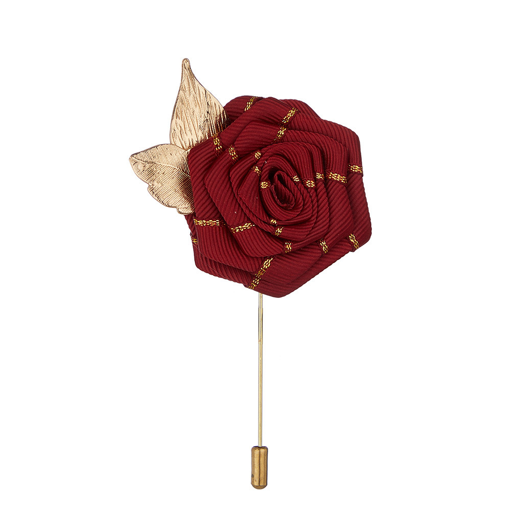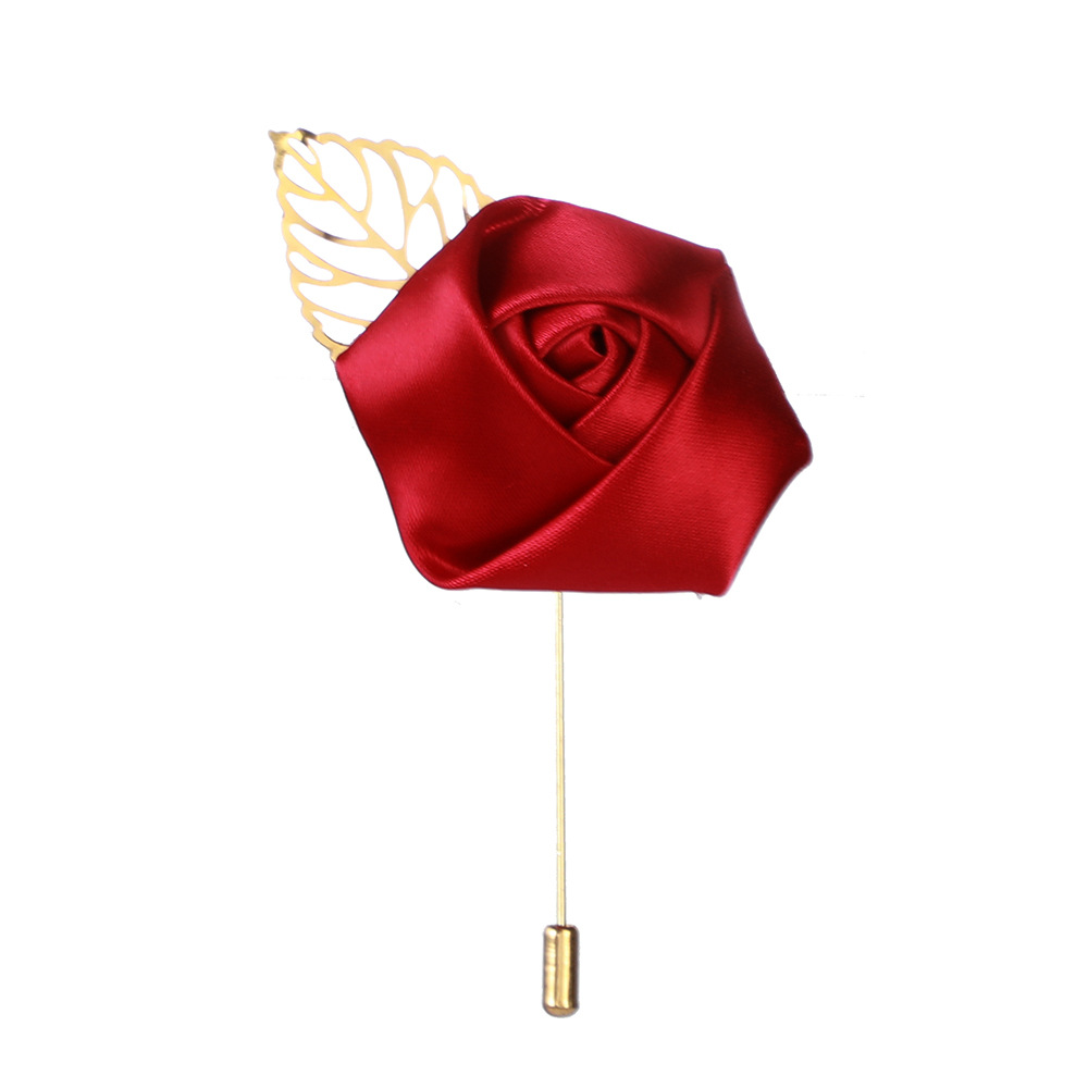 メンズスーツ生地ブローチ西洋風ウェディングローズゴールドリーフコサージュハイエンドエレガントな宴会プロムピンブローチ