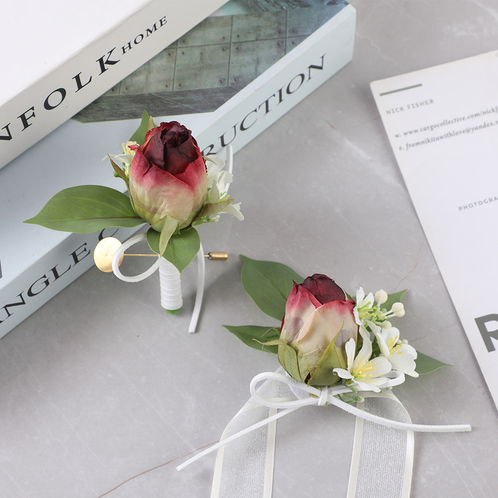 ウェディング用品新郎新婦ベストマンブライズメイドコサージュ結婚式VIPゲスト結婚式模擬ローズコサージュ