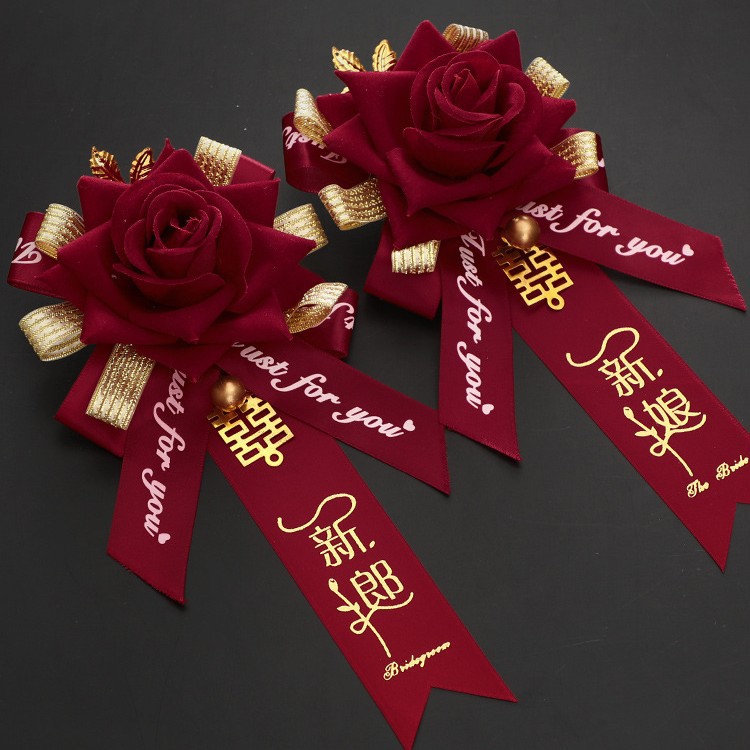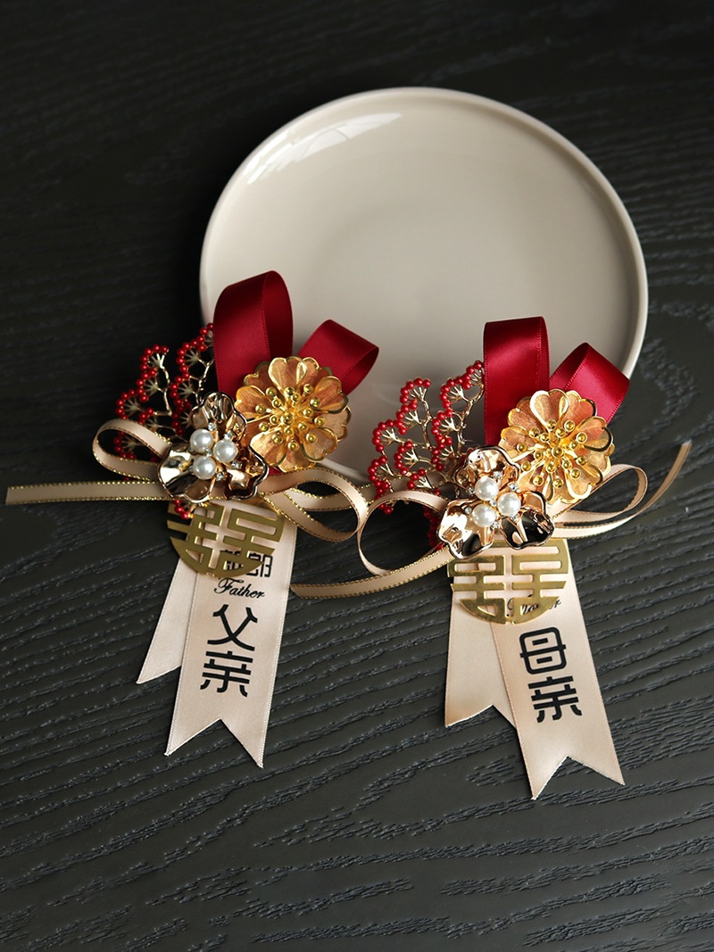新郎新婦胸花ベルベット高級感装飾花結婚セット家族中国式結婚式両親花嫁ブローチ