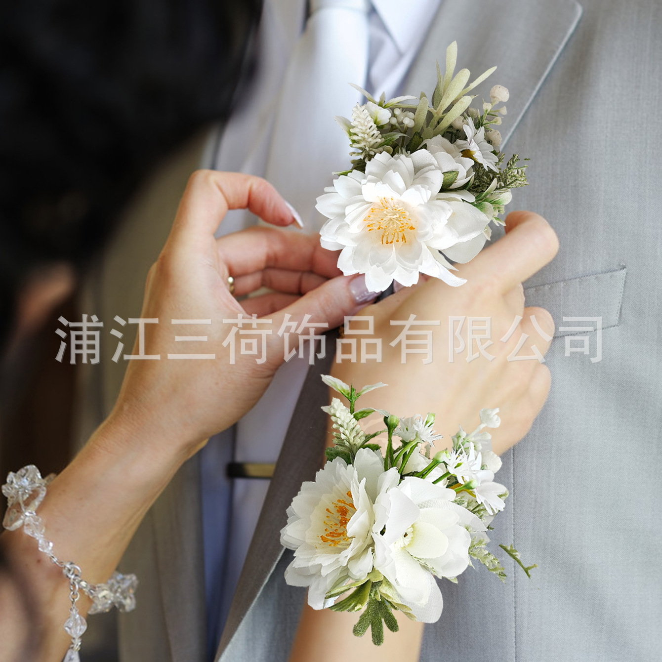 ✅ 工場卸売 結婚式 新郎新婦 胸花 ウェディング 即納 跨境 婚約 胸花 ブレスレットフラワー 卸売