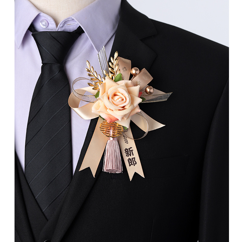 ✅森系結婚胸花花嫁シャンパンピンク胸花襟花新郎新婦結婚式