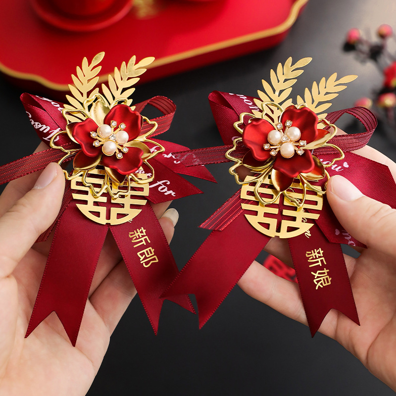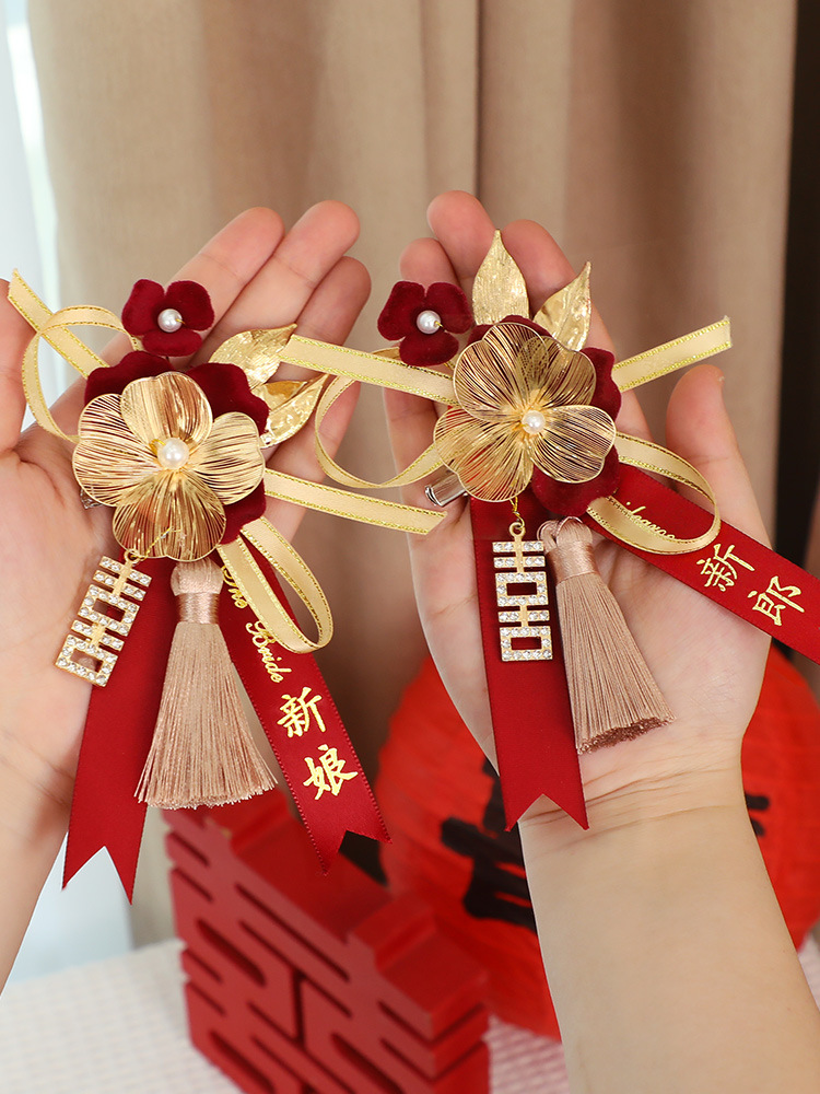中国式新郎新婦胸花ピン父母フルセット家族襟花森系結婚式ブローチ綺戎同級生