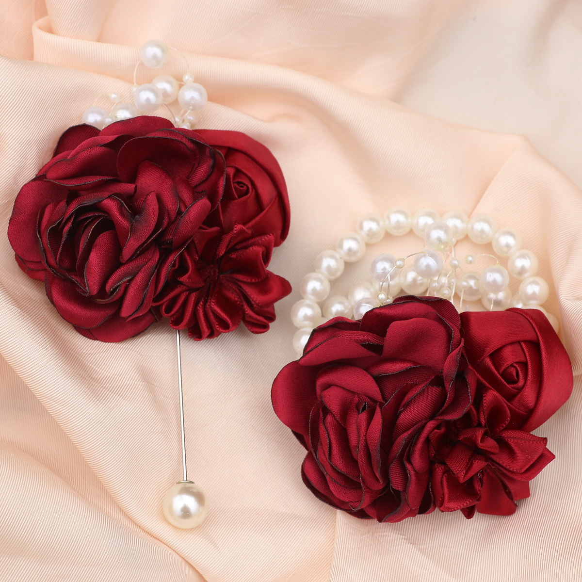 ✅結婚用品韓国式披露宴新婦新郎アクセサリー胸花絹布胸花創意結婚式飾り胸