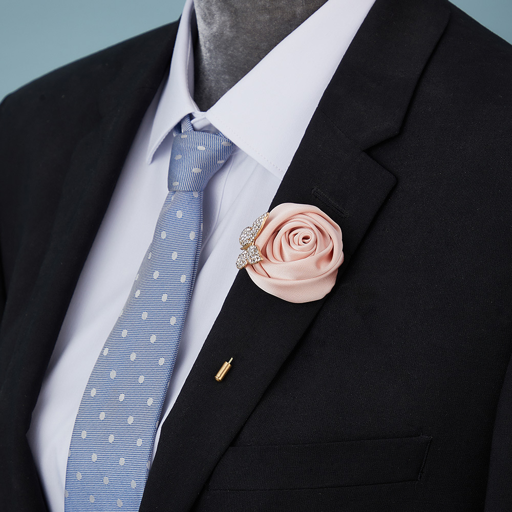 高級男性の結婚祝い用品のバラにダイヤモンドを入れて蝶結びを飾って晩餐会の舞踏会の装飾のブローチを飾ってピンを卸売りします。