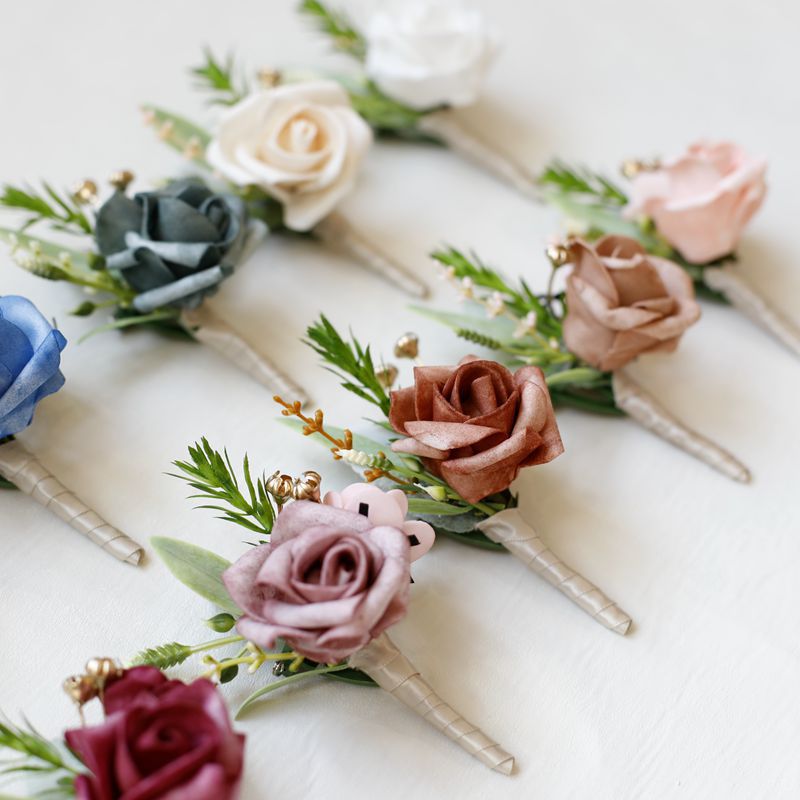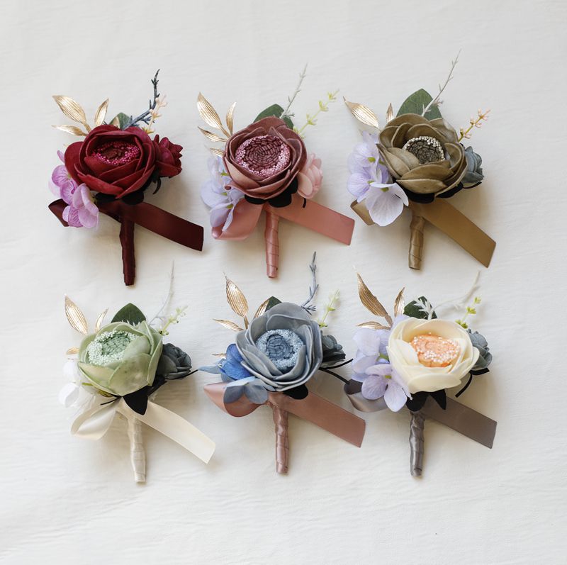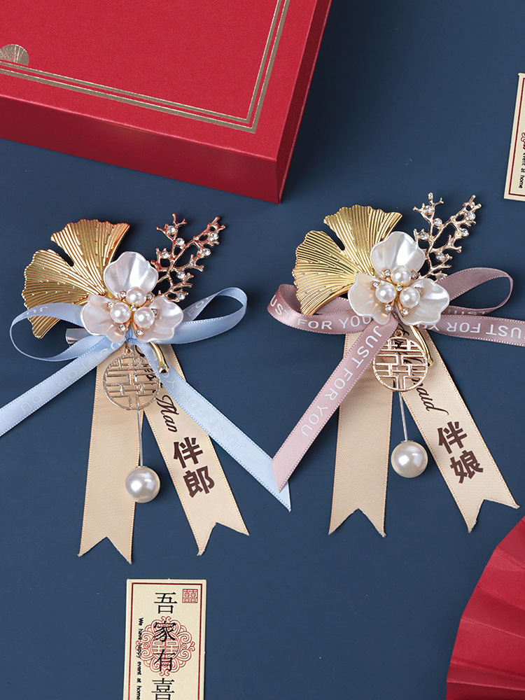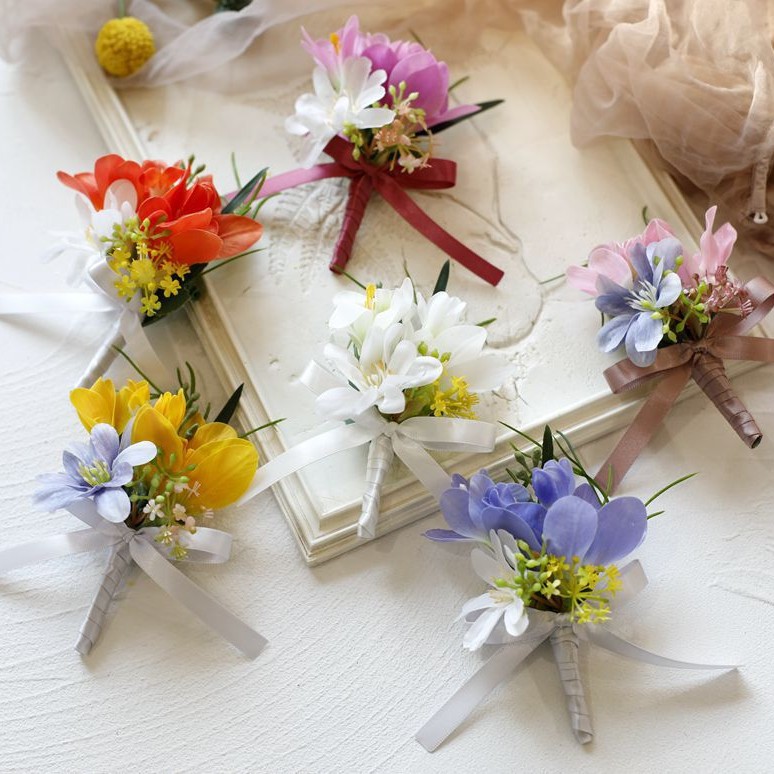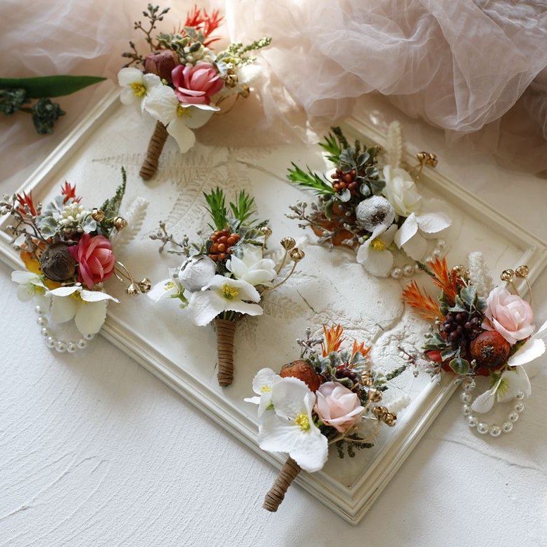 結婚用品結婚祝い花芸シミュレーション花ビジネス祝典開業ゲストの胸花森系結婚式新人の襟花