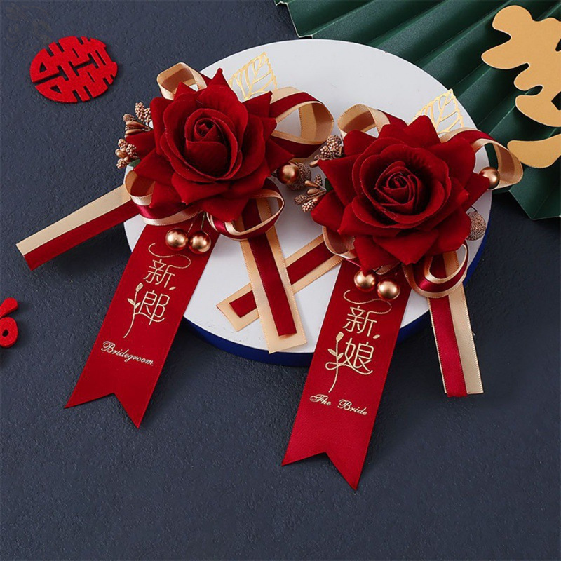 中国風新郎新婦結婚式コサージュ父母付添人花婿介添人ブライズメイドコサージュ手首花ウェディング用品