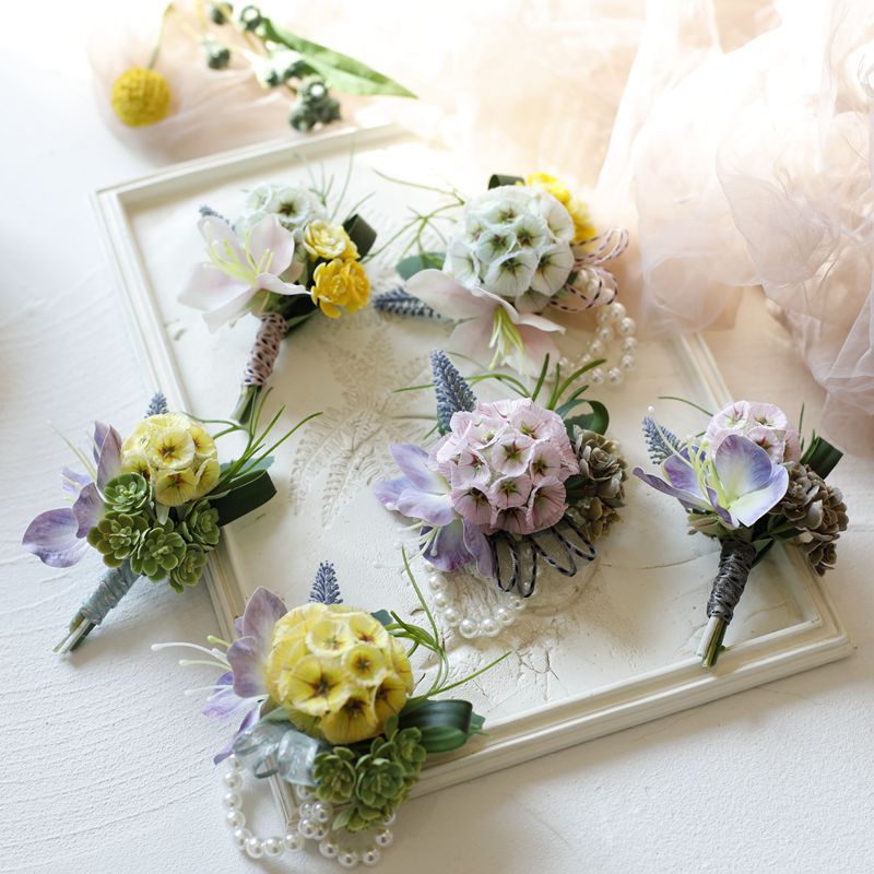模造花結婚式胸花手首花花嫁新郎襟花結婚パーティードレスブローチ姉妹親友手花