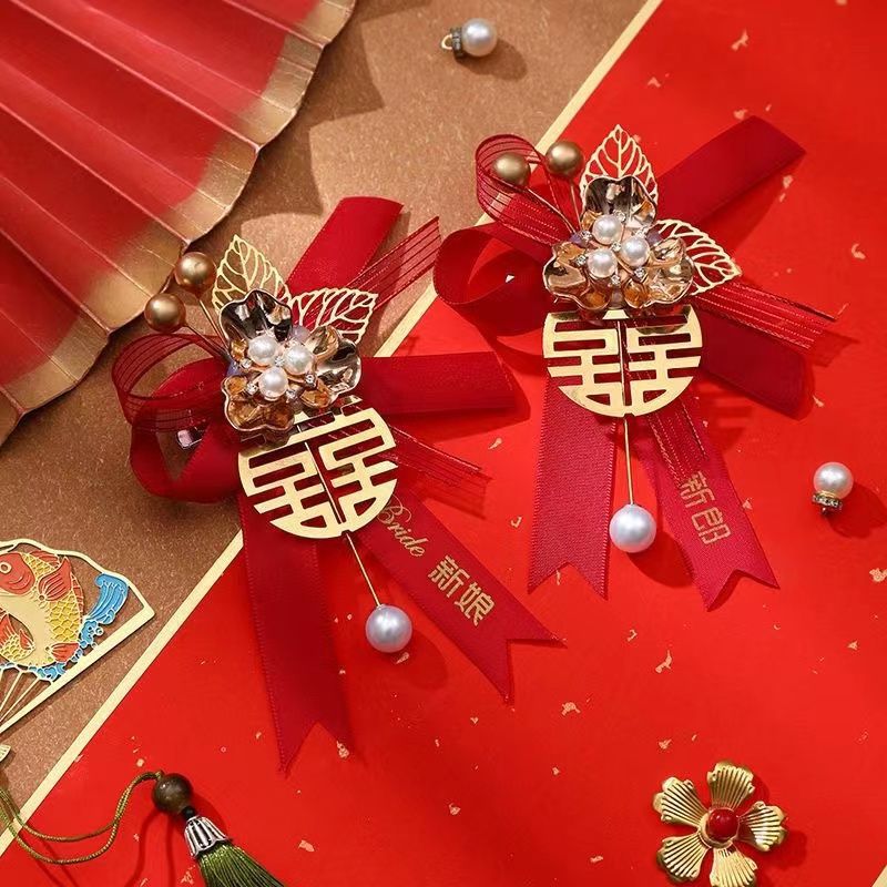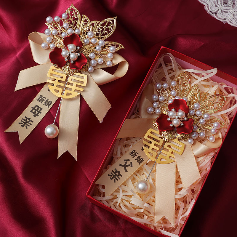 結婚の精巧な胸の花の新郎の新婦の両親の花嫁のシミュレーションの襟の花の中国式の結婚式の結婚の用品は大いに盛んです。
