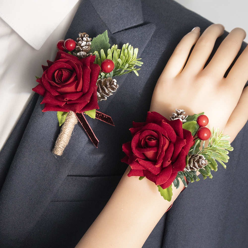 薇綿クロスボーダーヨーロッパ風冬クリスマス結婚式高級新郎新婦手首花胸花結婚用品アクセサリー