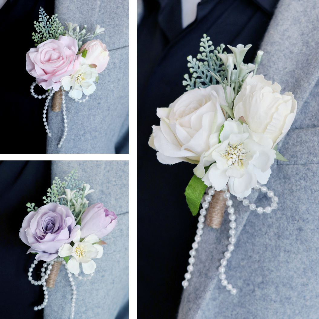 0103白緑森系花欧米洋式結婚用品結婚祝いビジネス祝典開業ゲストの胸花花花