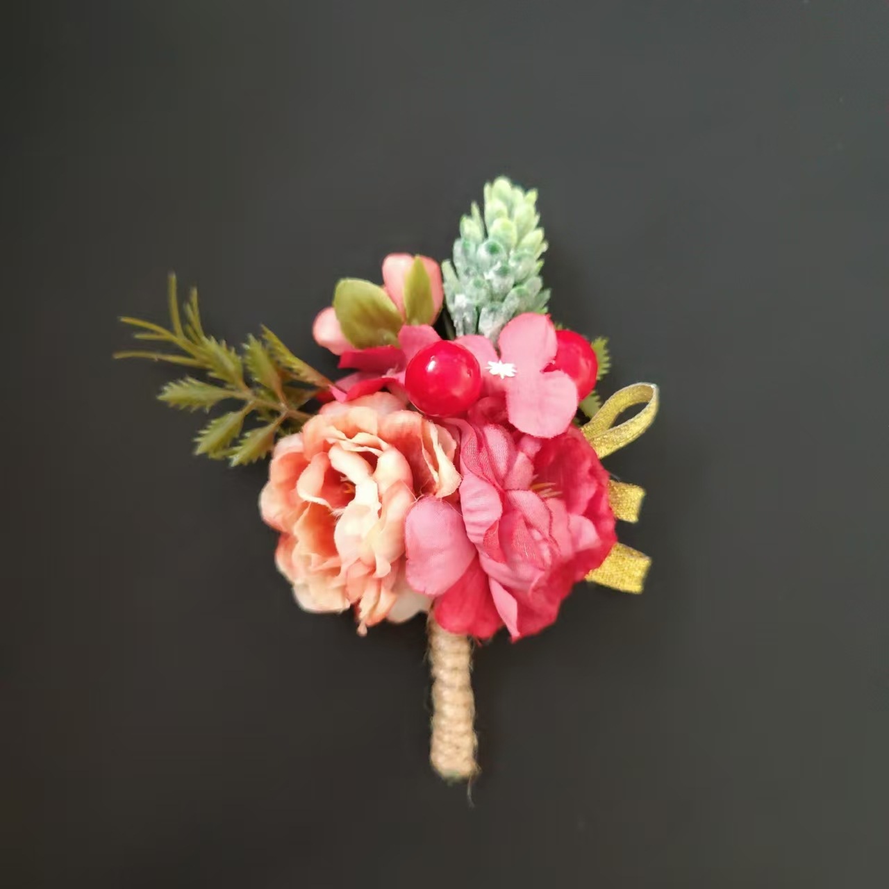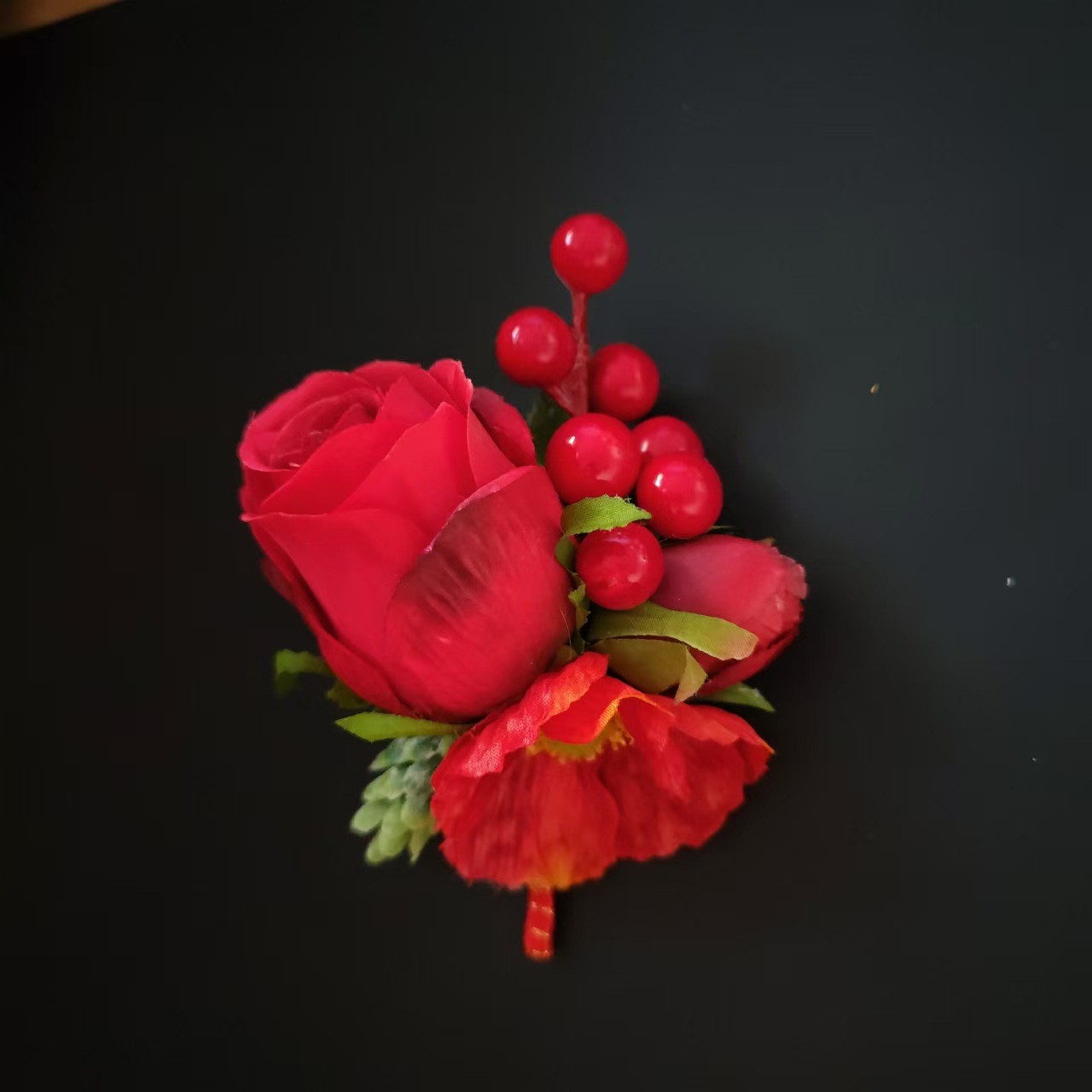 ホリデーギフトレッドビジネスゲスト新郎コサージュスーツ前立て花造花クロスボーダー配送XH045