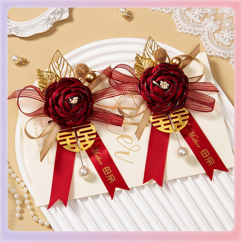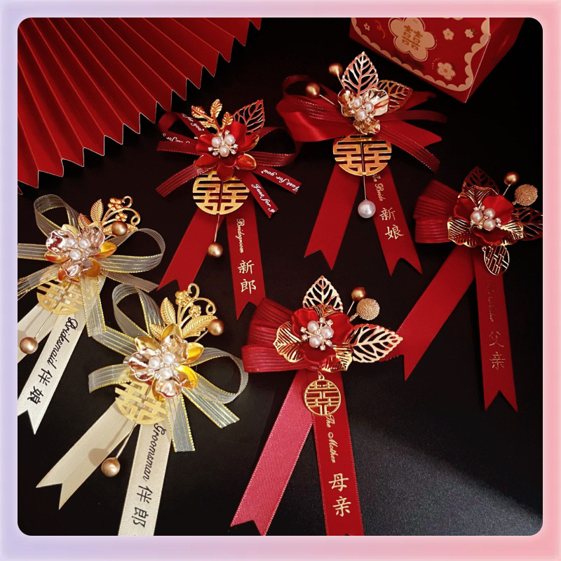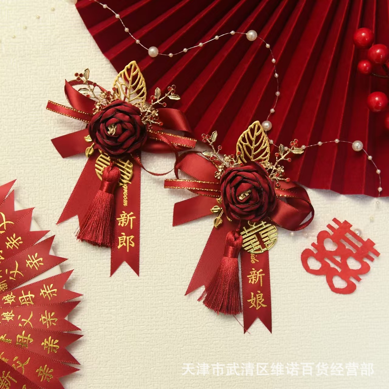 中国式双流蘇結婚式新郎新婦胸花結婚父母襟花迎賓花嫁手首花