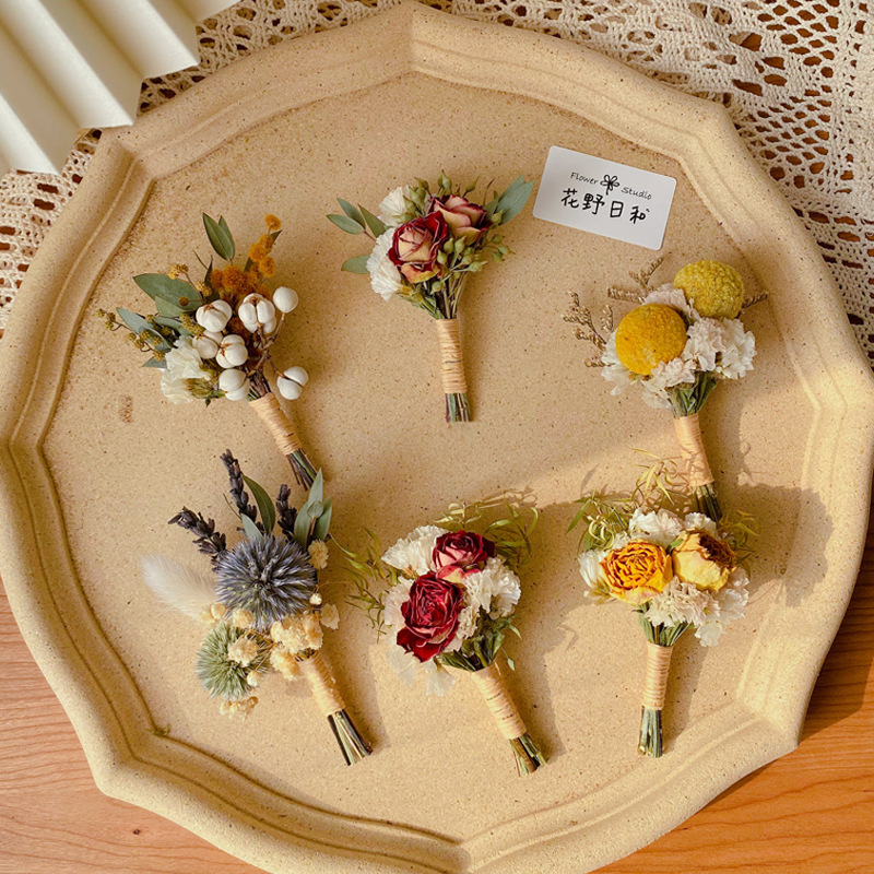 森系清新韓国式永生花乾花胸花新婦新郎結婚式パーティードレス卒業胸花アクセサリー