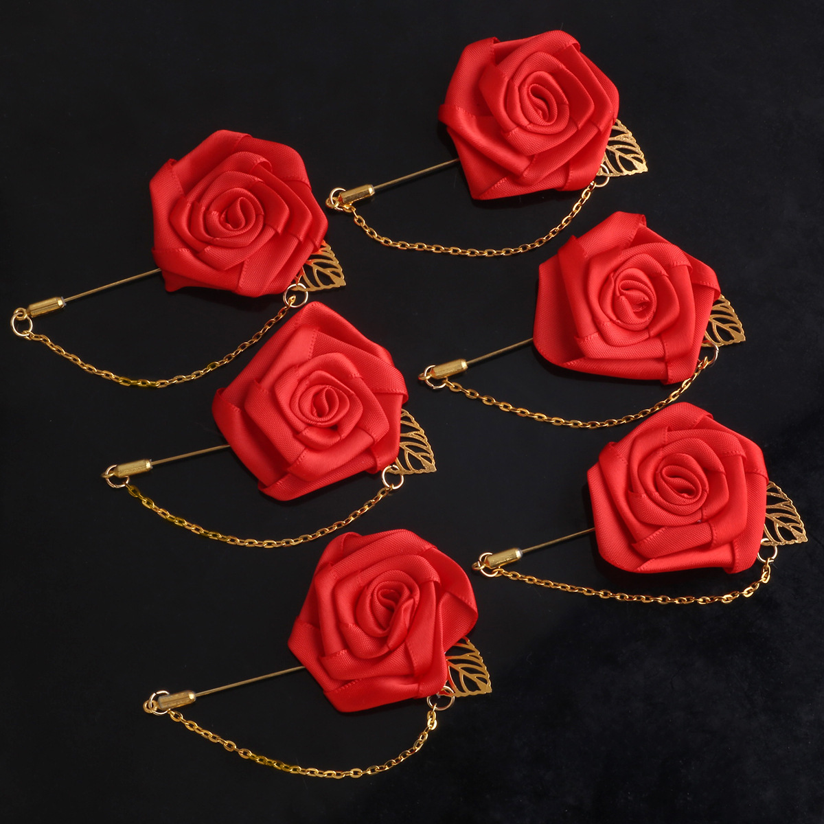 クロスボーダーtemu热い贩売チャンス商品ローズサテン新郎コサージュ花嫁手ハケ花装饰洋服アクセサリー