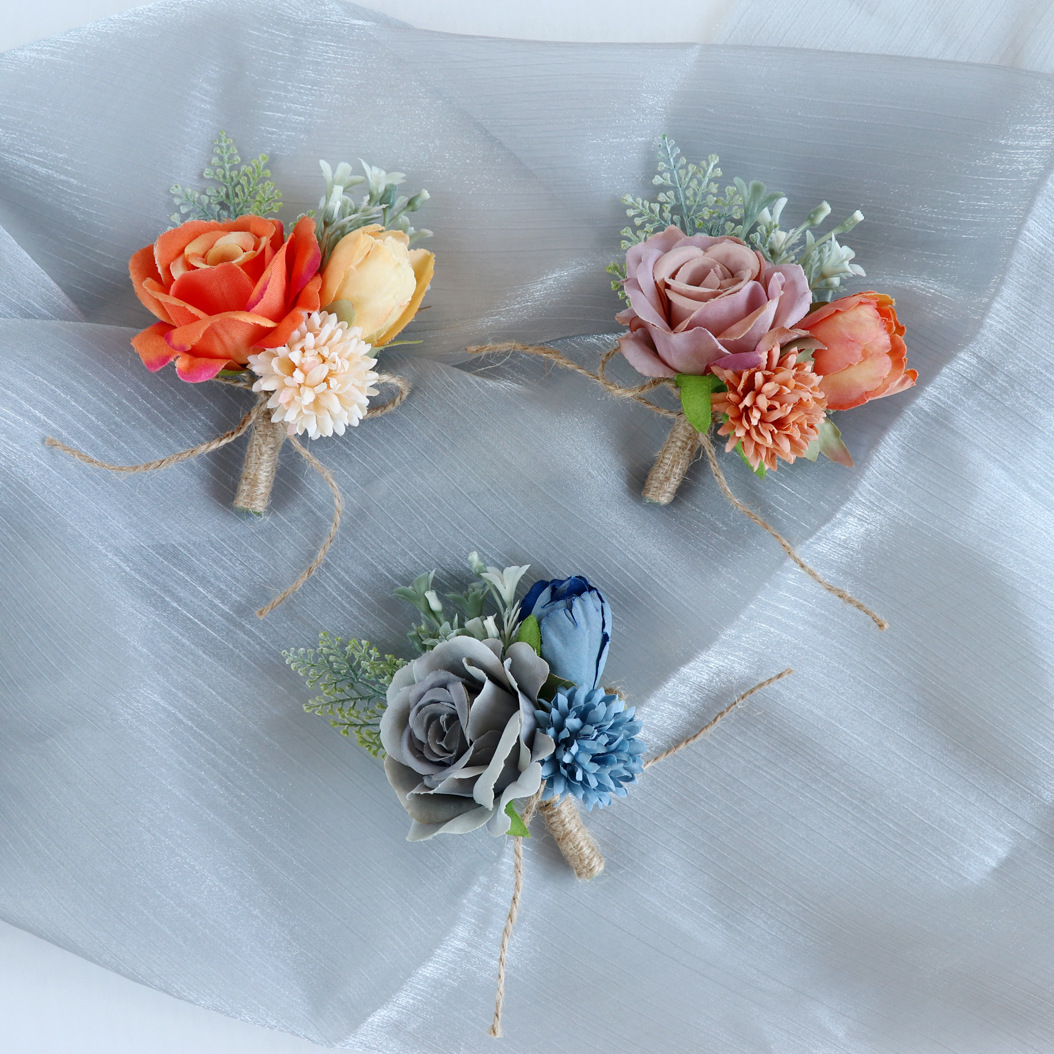 青いバラの結婚式の手首の花の胸の花のシミュレーションの偽の花のウェディングの部品の学生は手の花の宴会の装飾品を演じます。