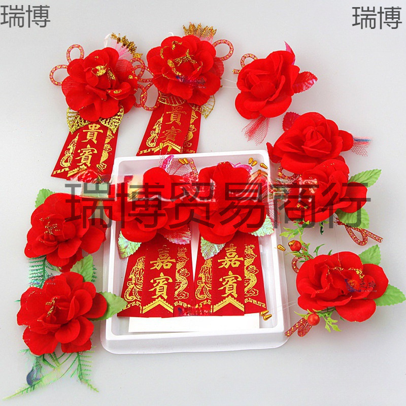 卸売りの結婚式の胸の花の手の花の新婦の新郎の結婚の襟の花の喜字のフルセットの父の母の赤い胸の花