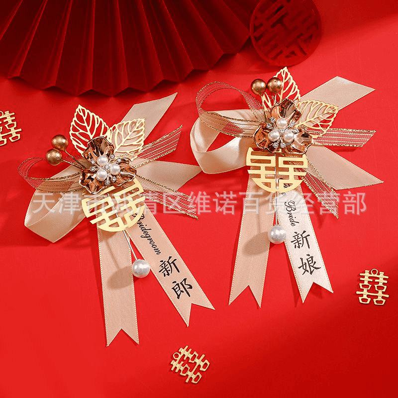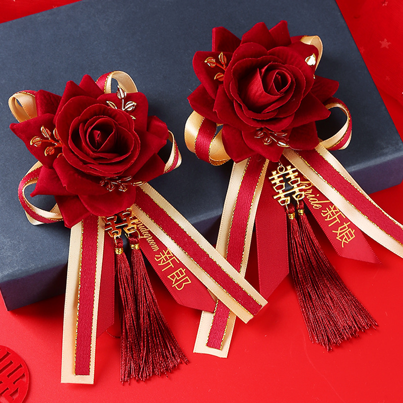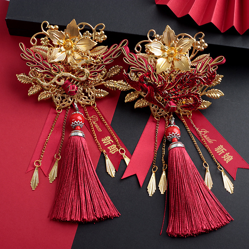 2024豪華版中国式結婚式秀イネ服新郎新婦龍鳳襟花結婚胸花家族セット