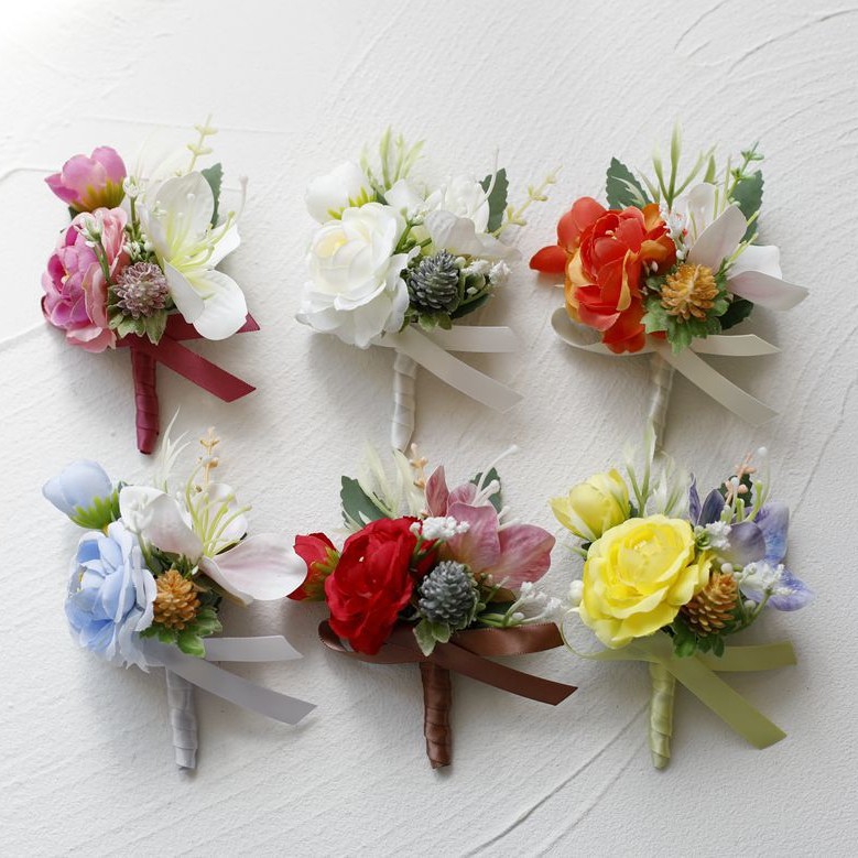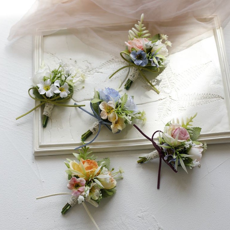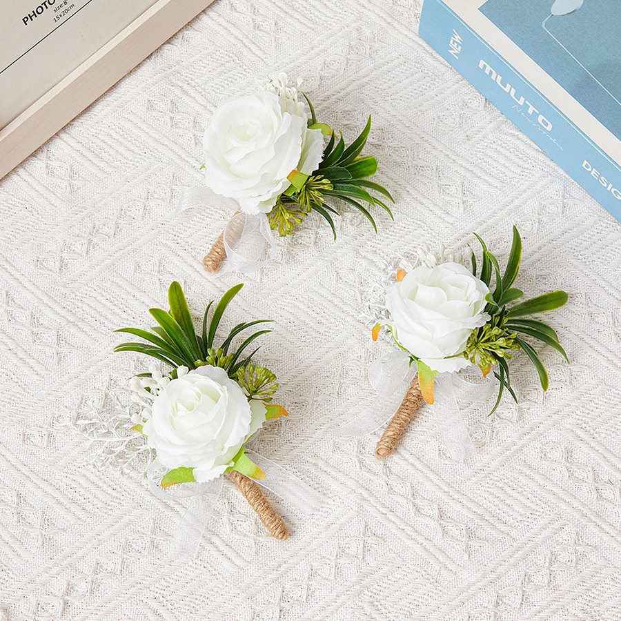 森系シミュレーションバラ花嫁花嫁結婚式手首花新郎連れ合い結婚胸花イベント式典会議