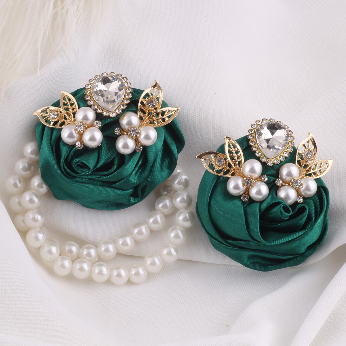 国境を越えた新郎新婦水ドリルピン胸花ミルク糸薔薇手首花ドレスアクセサリー手花XH923C
