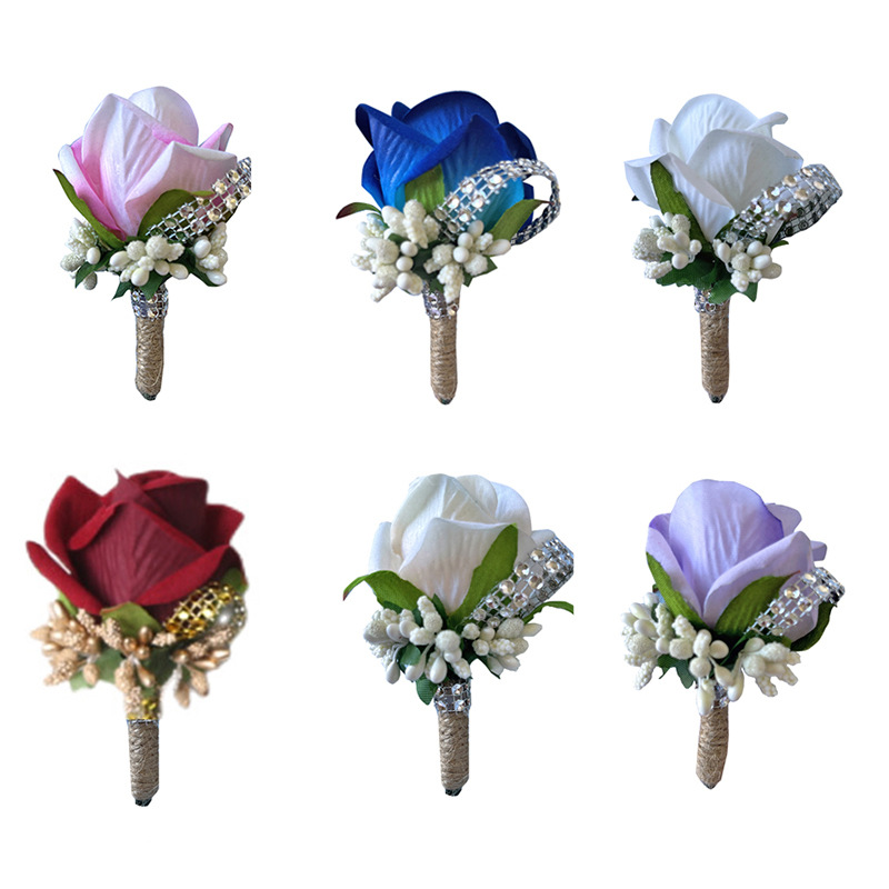 結婚胸花新郎新婦襟花手作りブローチ舞踏会パーティーシミュレーションバラ花束XH923A