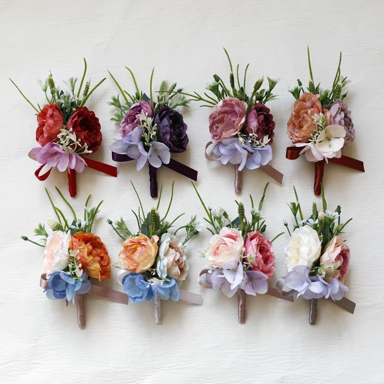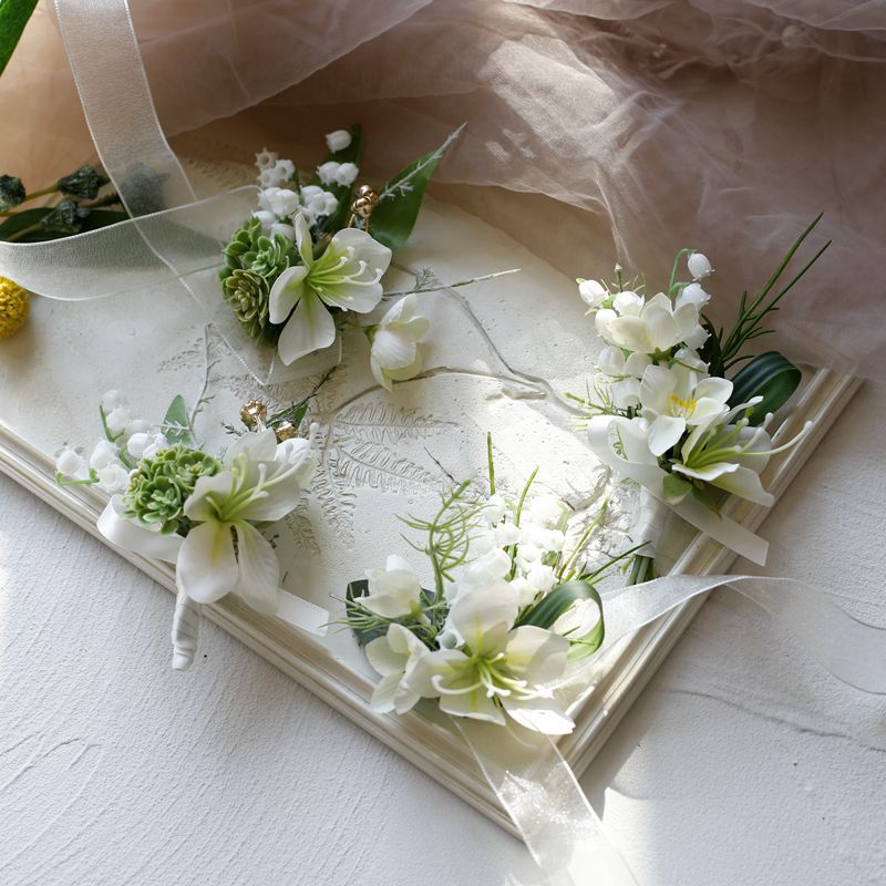 新型韓国風結婚式結婚新郎新婦胸花手首花白い森系花嫁姉妹団襟花