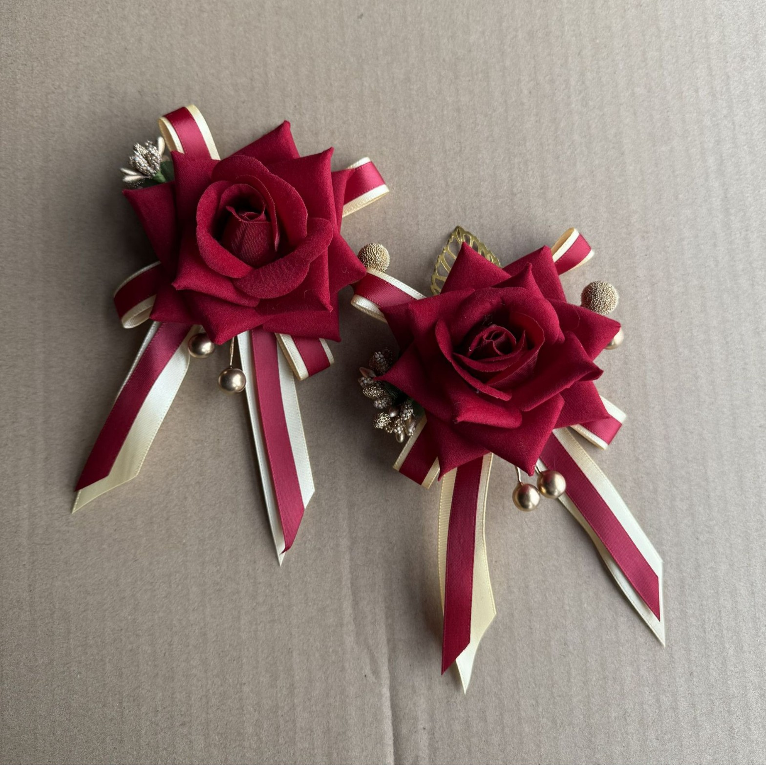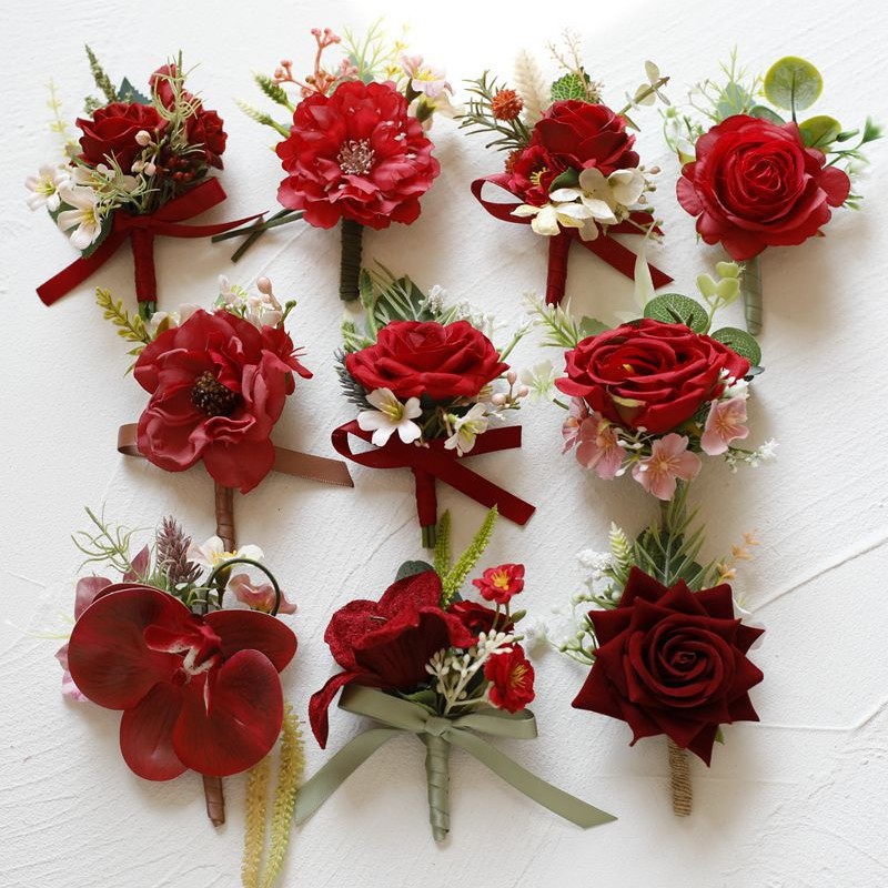 ウェディングコサージュ、高級新郎新婦用ウェディング用品、結婚式の両親用ブローチ、赤いブローチ