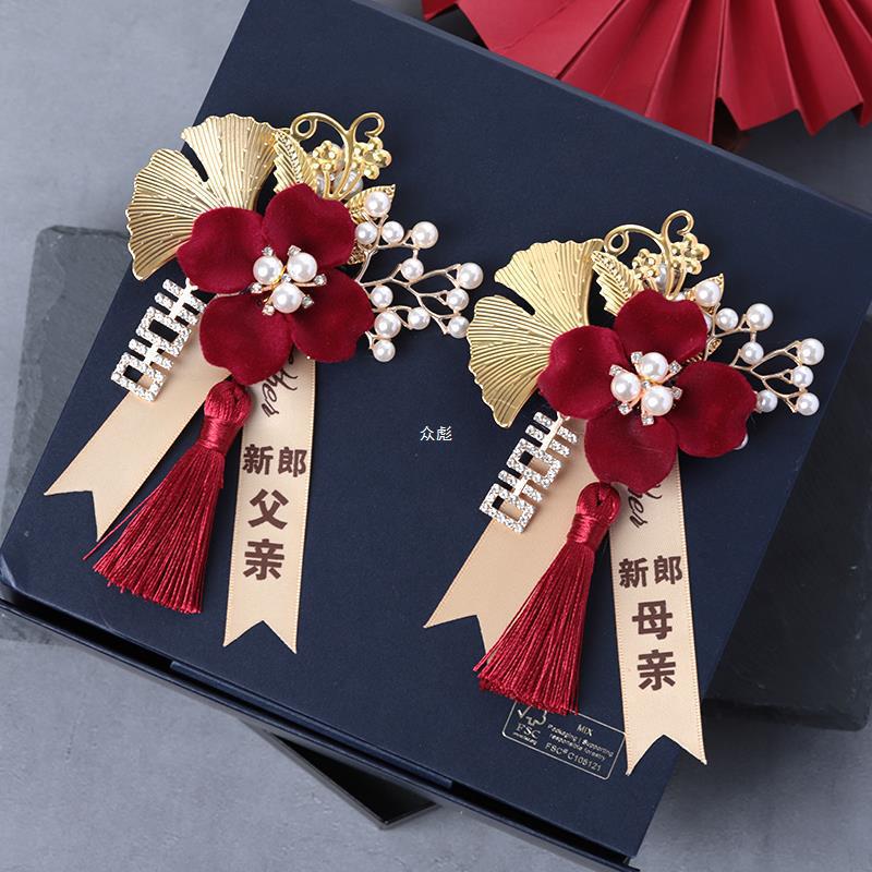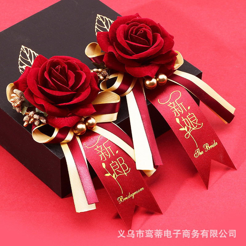 新型高級中国式新郎新婦結婚式の胸花結婚セット