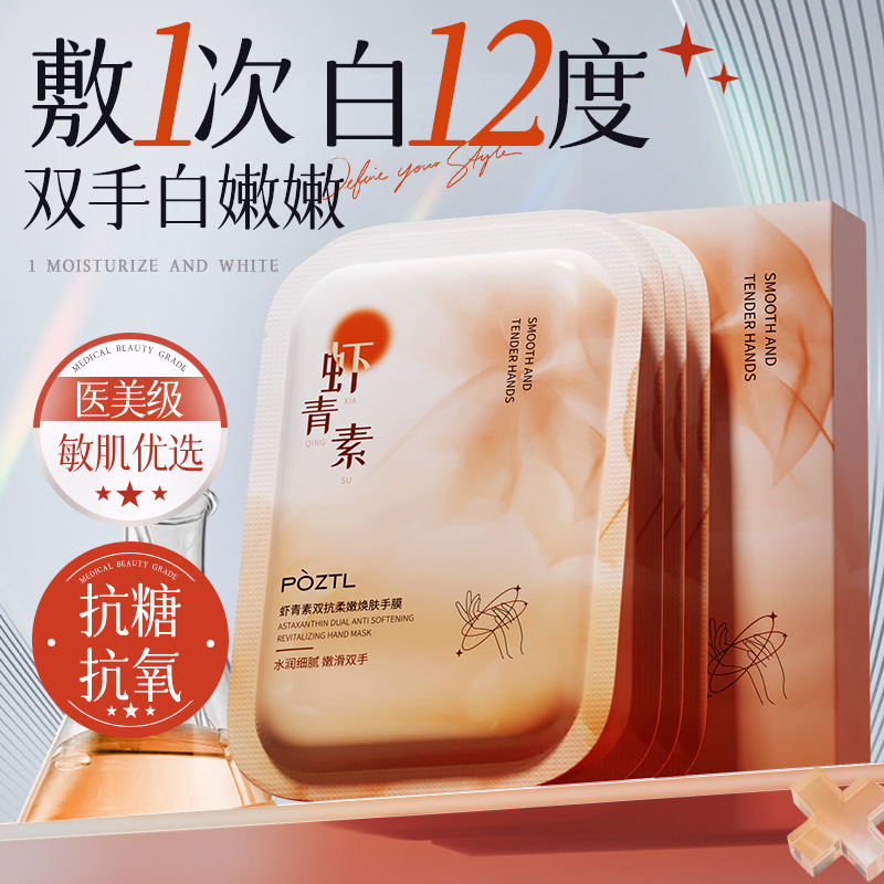 アスタキサンチン美白手膜若白保湿補水手部看護修復乾燥裂粗粗淡化手紋手袋タッチ
