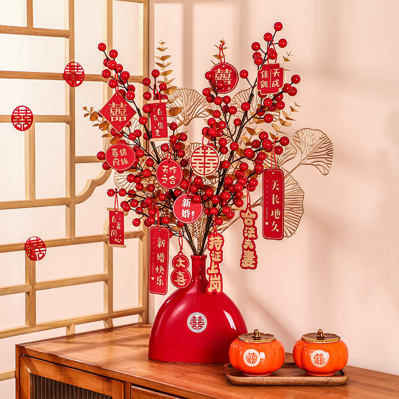 乾花シミュレーション花紅果発財果アカシア紅豆陶磁器ガラス花瓶生け花新年着地飾り