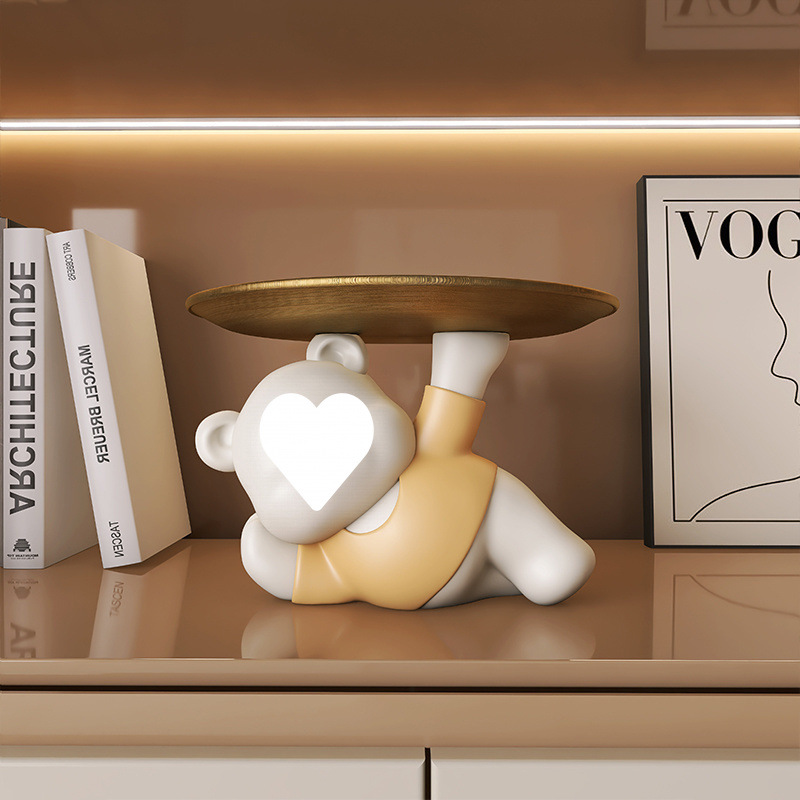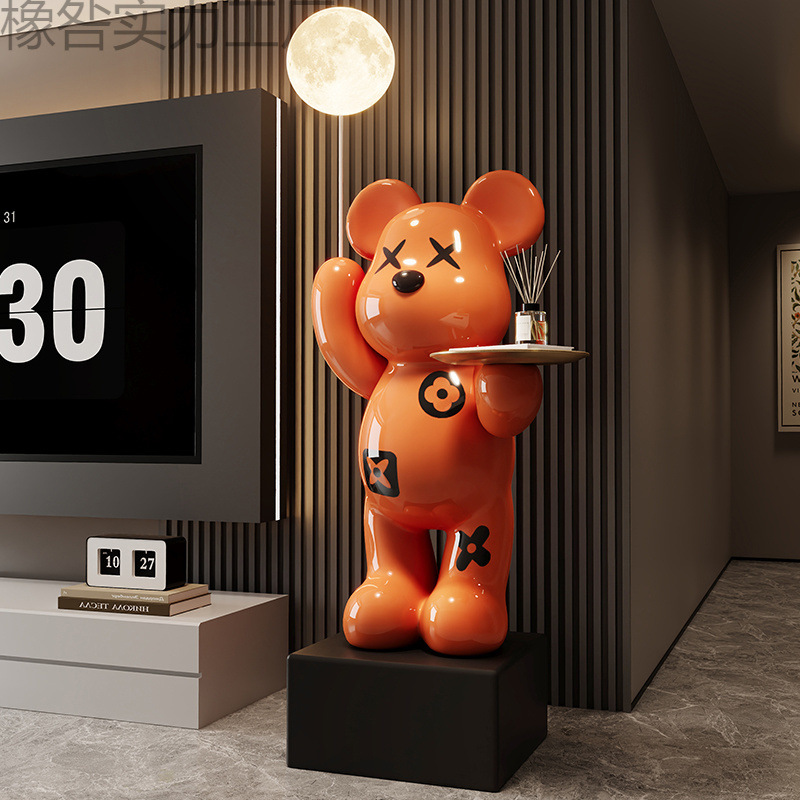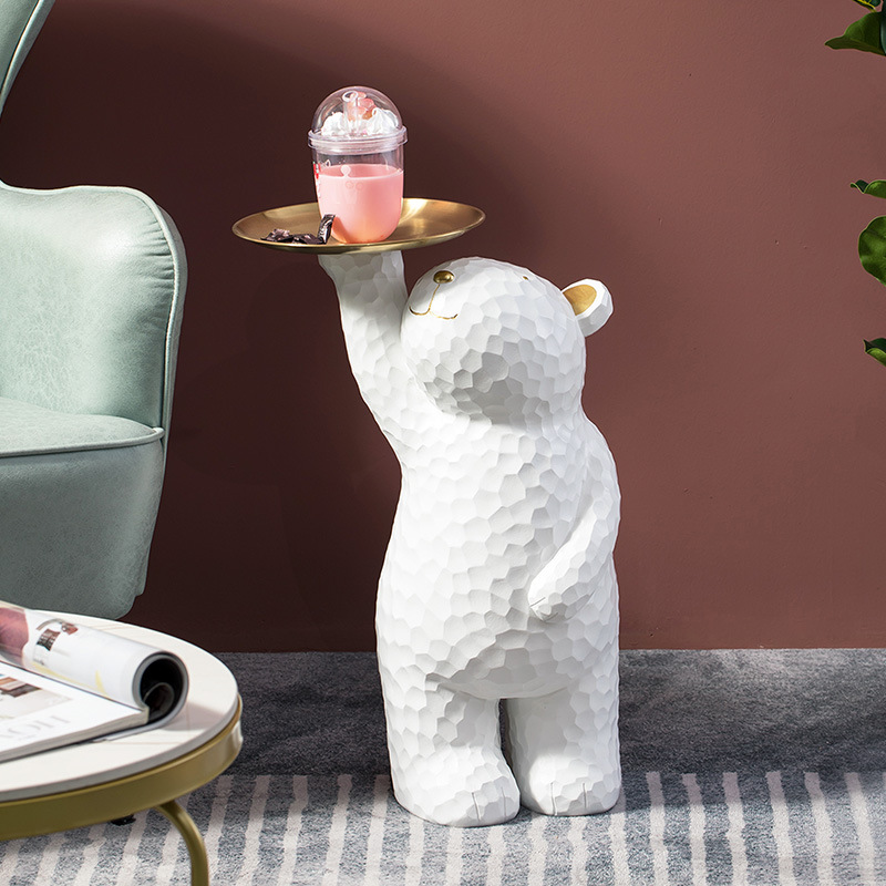 リビングルームのクマの素敵な床置き飾り玄関サイドテーブルソファの横のトレイ装飾新築祝いのギフト大