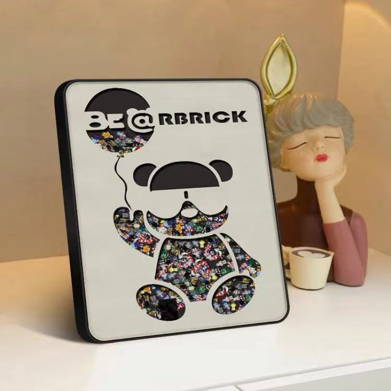 現代のシンプルで贅沢なネットの赤い潮は積み木の熊の暴力の熊の置物の客間を遊んで戸口のテレビの棚の装飾品に入ります。