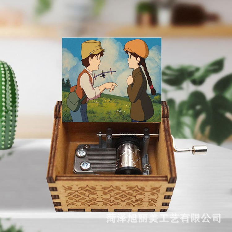 木製オルゴールスカイシティ塗装クリエイティブミニ木製手回しオルゴールギフトメーカー卸売