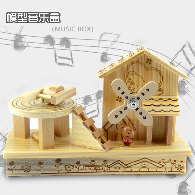 W22木製音楽風車子供木製オルゴールプレゼント子供オルゴール模型玩具代発