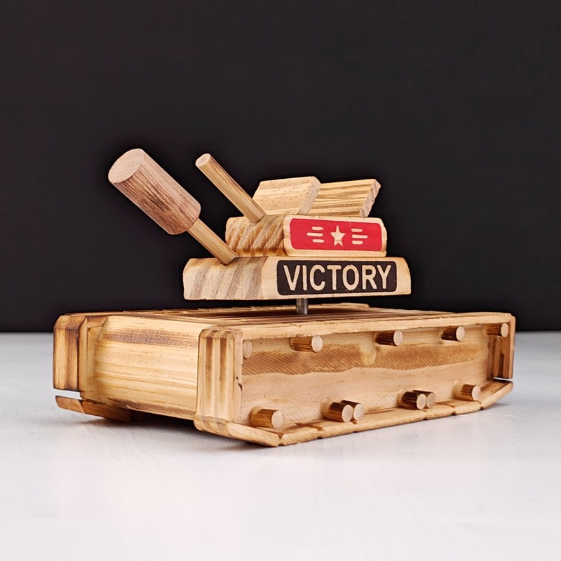 木質八一戦車風車オルゴール軍事模型創意子供玩具木製工芸品置物卸売り