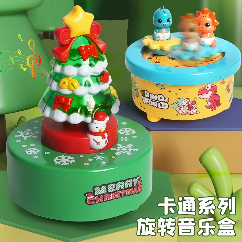 クロスボーダーの新型アニメの形の回転オルゴールのぜんまいの照明の音効果のクリスマスツリーのプレゼントの宇宙船の置物