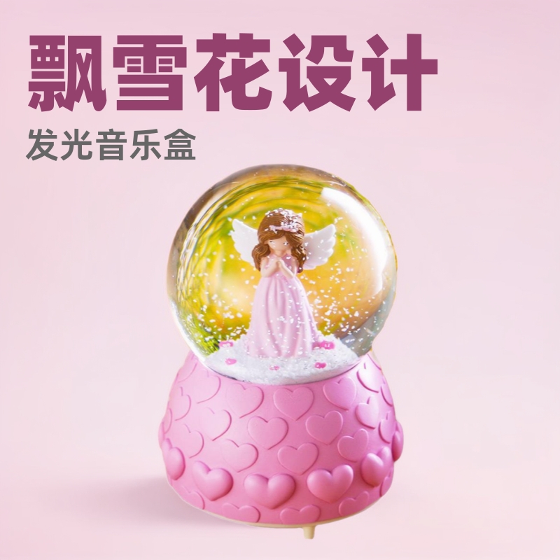 天使の水晶のボールのオルゴールのオルゴールは明かりをつけて光ります。