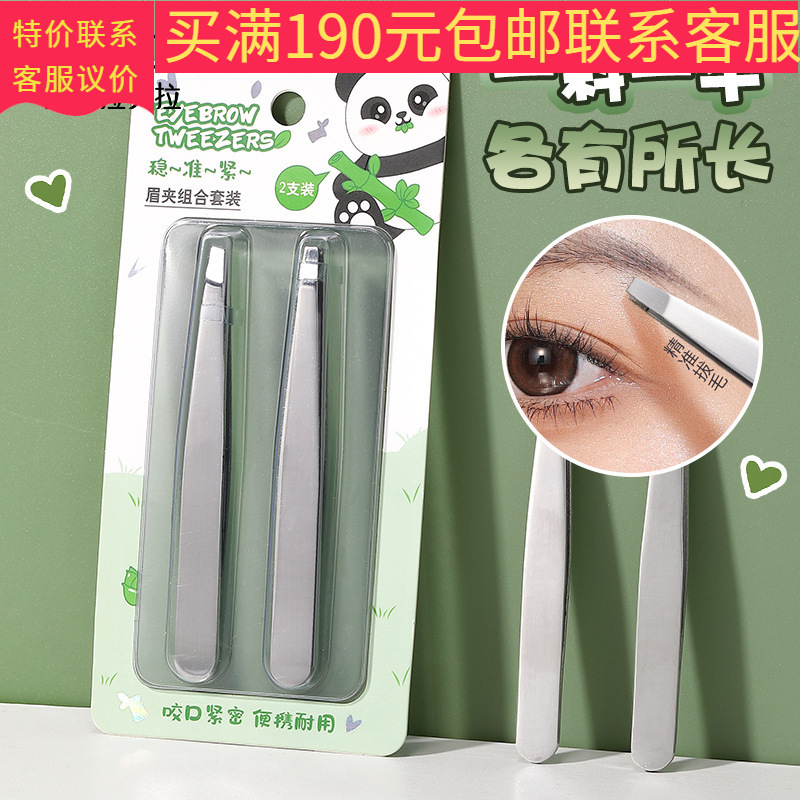 LMLTOPパンダシリーズSY527平斜口眉クリップ2個入りステンレス製眉毛抜き眉ピンセット