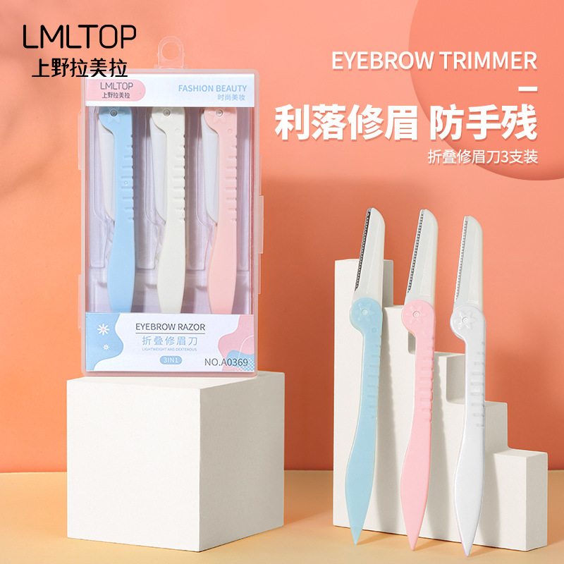 LMLTOP眉毛修理ナイフ3本セット保護ネット付きストレートハンドル眉毛剃刀美化粧工具卸売りSY1016
