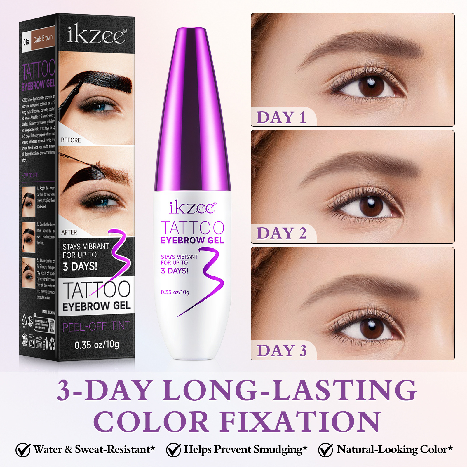国境を越えた人気のikzeeティアオフ眉毛染めクリーム防水、汗防止、汚れ防止、自然で長持ちするティアオフ眉毛クリームマルチカラー10g