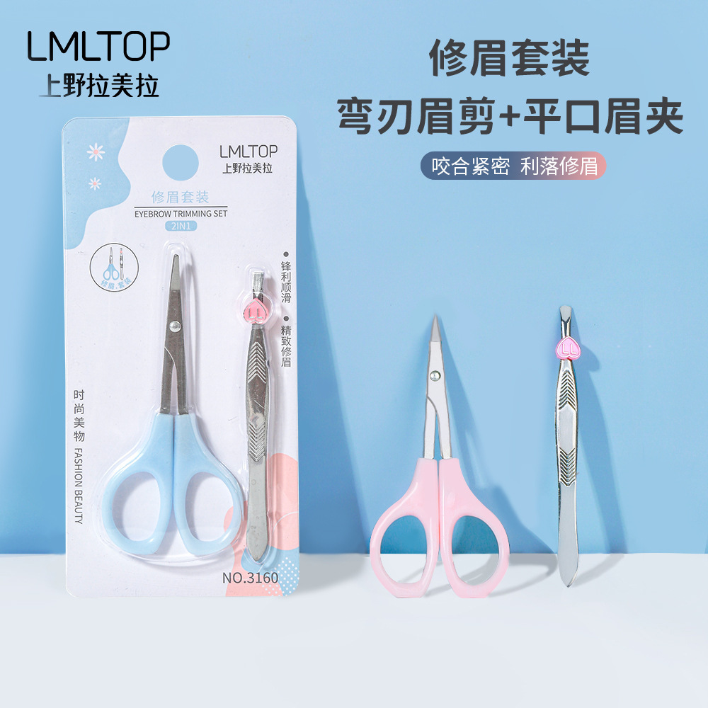 Lamela メイクアップ眉毛トリミングセットステンレス鋼眉毛トリミングはさみ眉毛クリップ美容ツール 2 パック卸売 3160